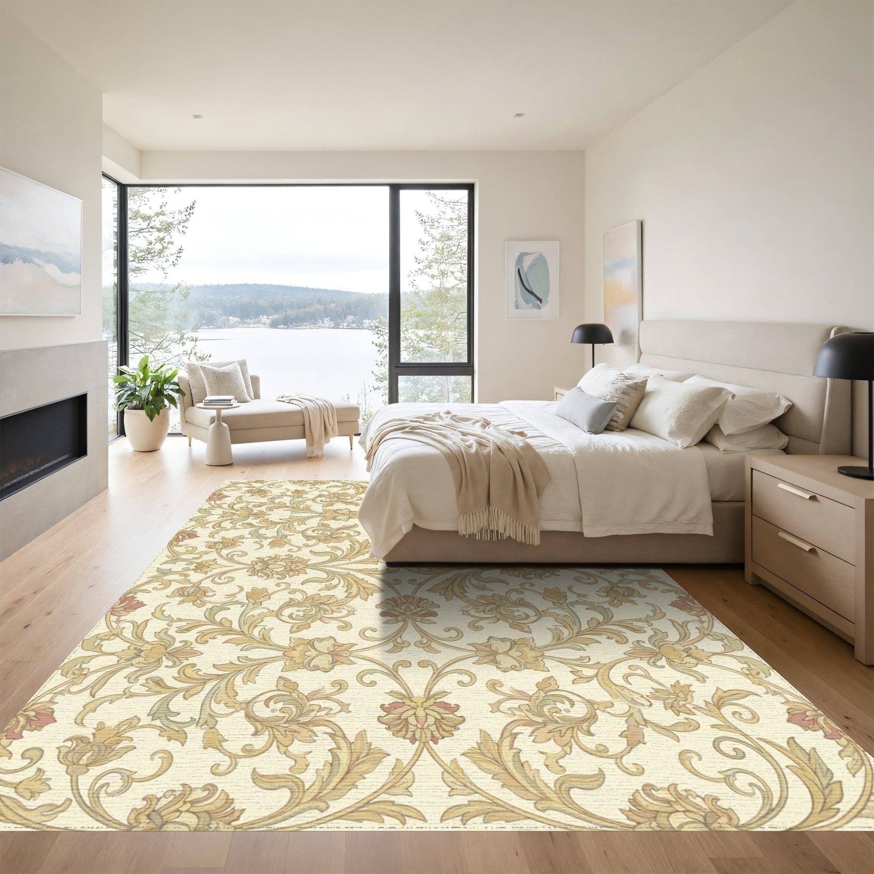 Flatwoven High Traffic Area Rug, Cream Floral Vine Scroll Rug, Non Slip, Stain Resistant, Washable Area Rugs for Living Room, Bedroom Overview: