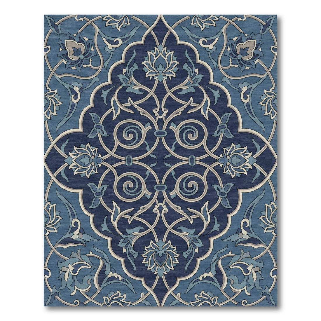 Flatwoven High Traffic Area Rug, Dark Blue Floral Arabesque Scroll Rug, Non Slip, Stain Resistant, Washable Area Rugs for Living Room, Bedroom Overview: