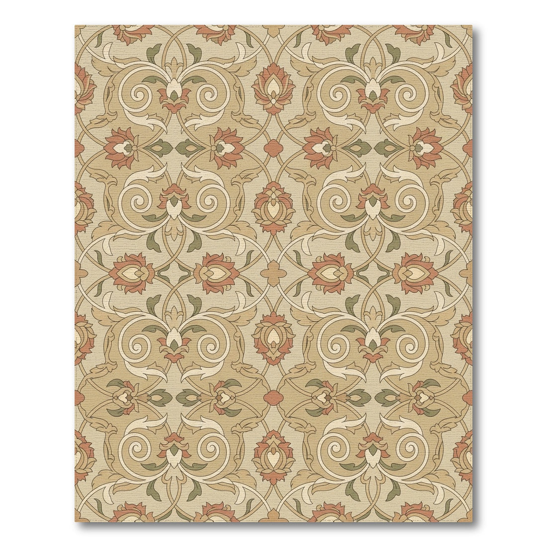 Flatwoven High Traffic Area Rug, Earthy Floral Arabesque Scroll Rug, Non Slip, Stain Resistant, Washable Area Rugs for Living Room, Bedroom Overview: