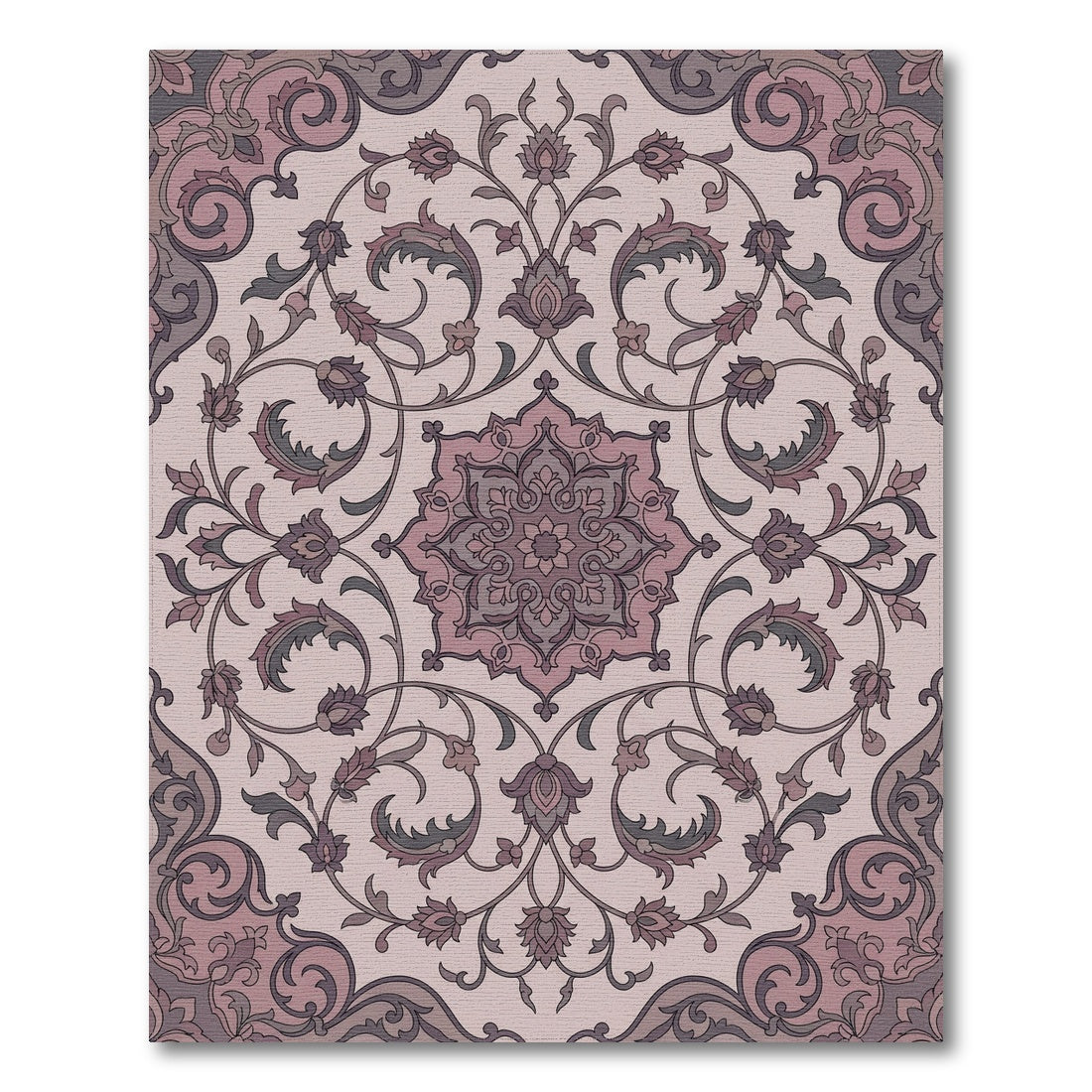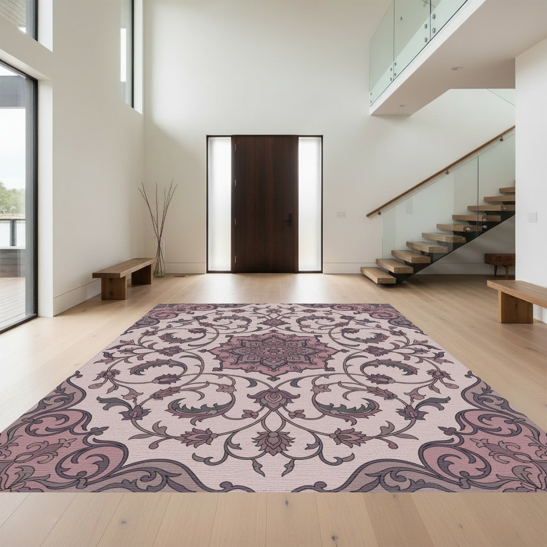 Flatwoven High Traffic Area Rug, Mauve Floral Arabesque Scrollwork Rug, Non Slip, Stain Resistant, Washable Area Rugs for Living Room, Bedroom Overview: