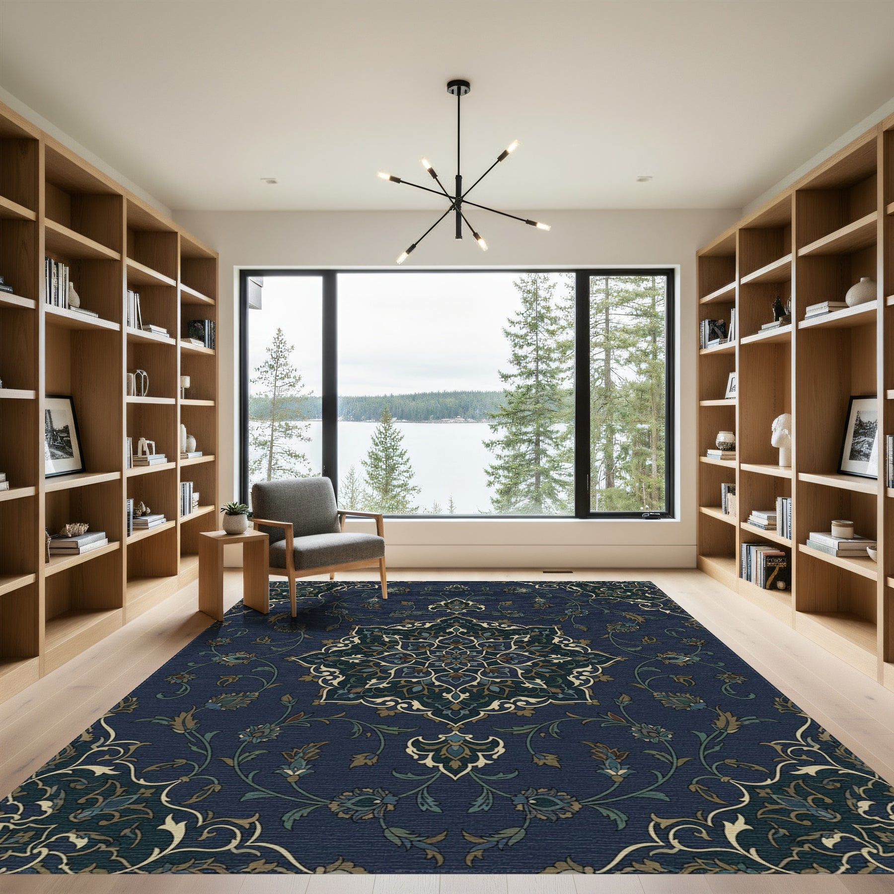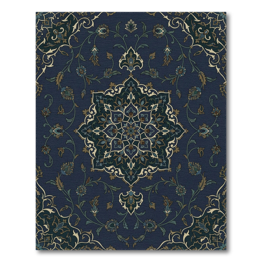 Flatwoven High Traffic Area Rug, Midnight Blue Floral Medallion Overlay Rug, Non Slip, Stain Resistant, Washable Area Rugs for Living Room, Bedroom Overview: