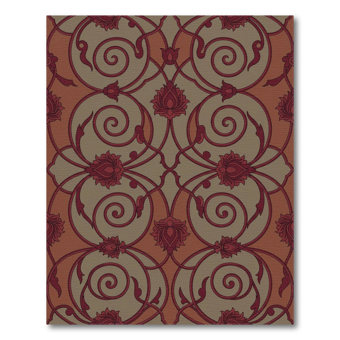 Flatwoven High Traffic Area Rug, Rich Crimson Floral Scrollwork Rug, Non Slip, Stain Resistant, Washable Area Rugs for Living Room, Bedroom Overview: