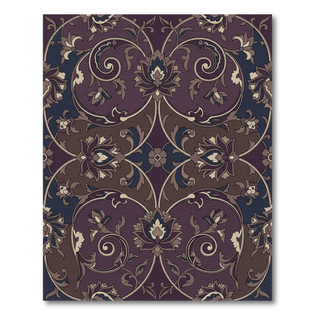 Flatwoven High Traffic Area Rug, Rich Plum Floral Scrollwork Rug, Non Slip, Stain Resistant, Washable Area Rugs for Living Room, Bedroom Overview: