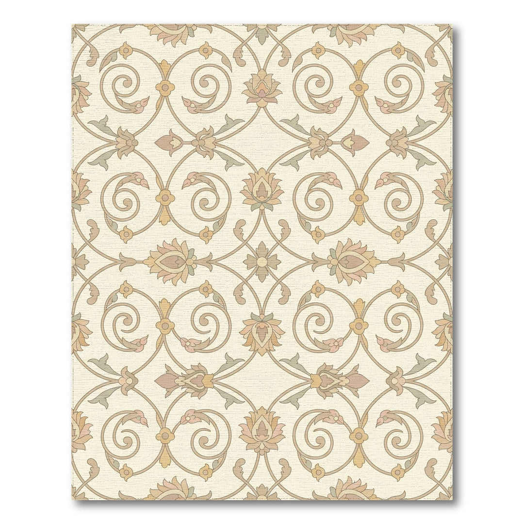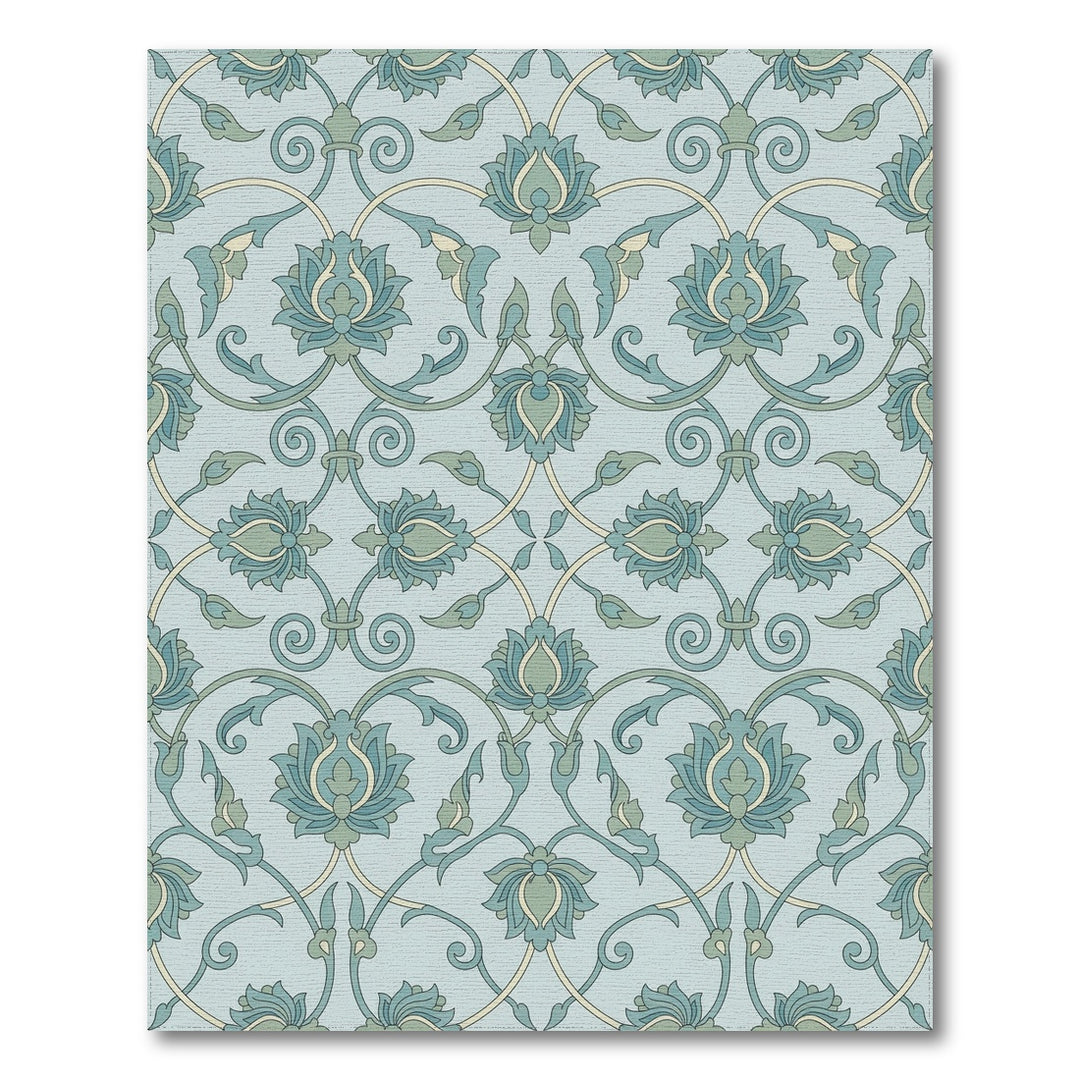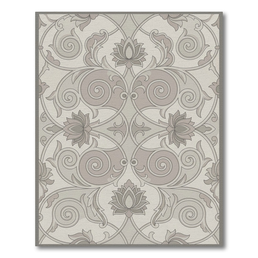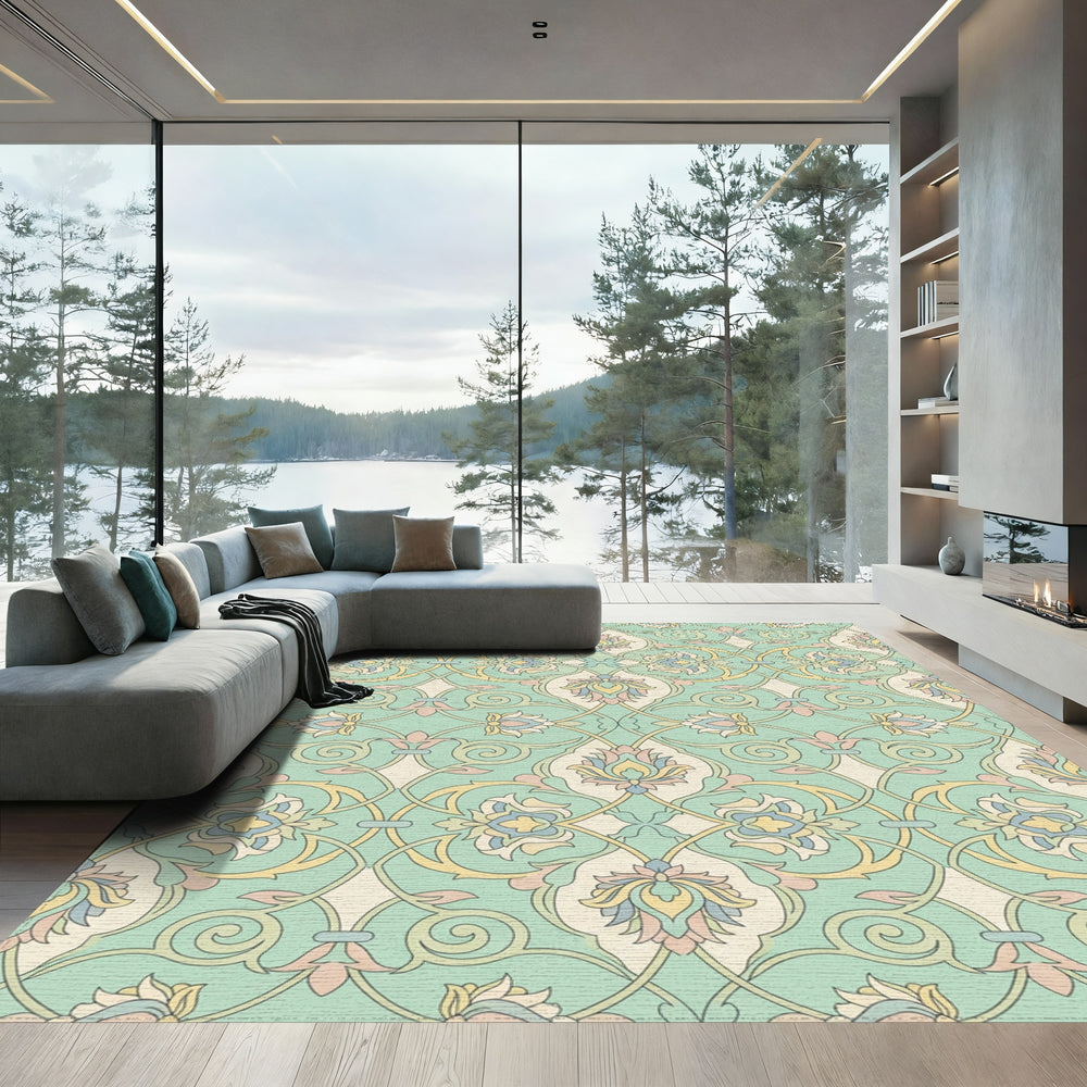 Pastel Floral Scrollwork With Lotus Bloom Rug
