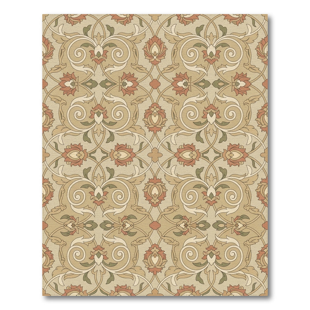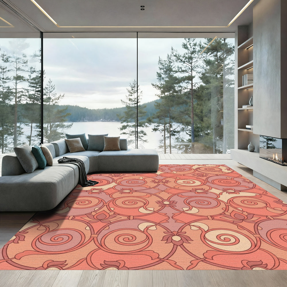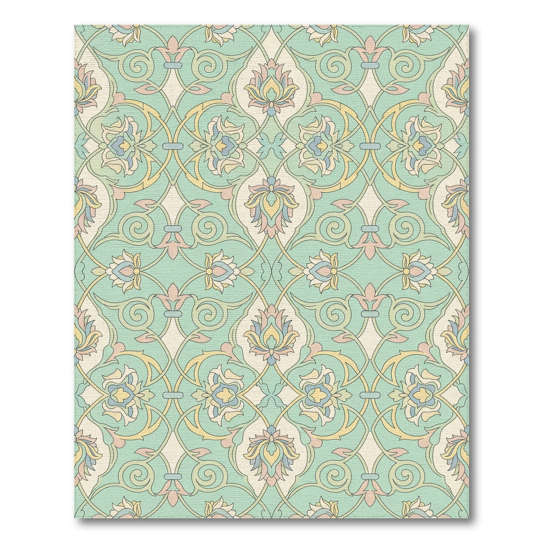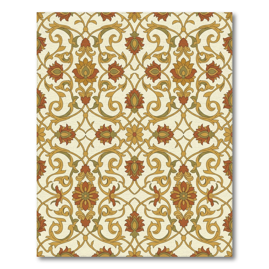 Pastel Floral Scrollwork With Lotus Bloom Rug