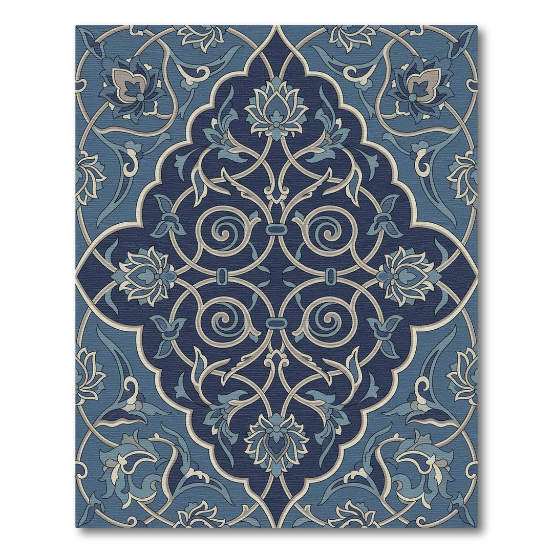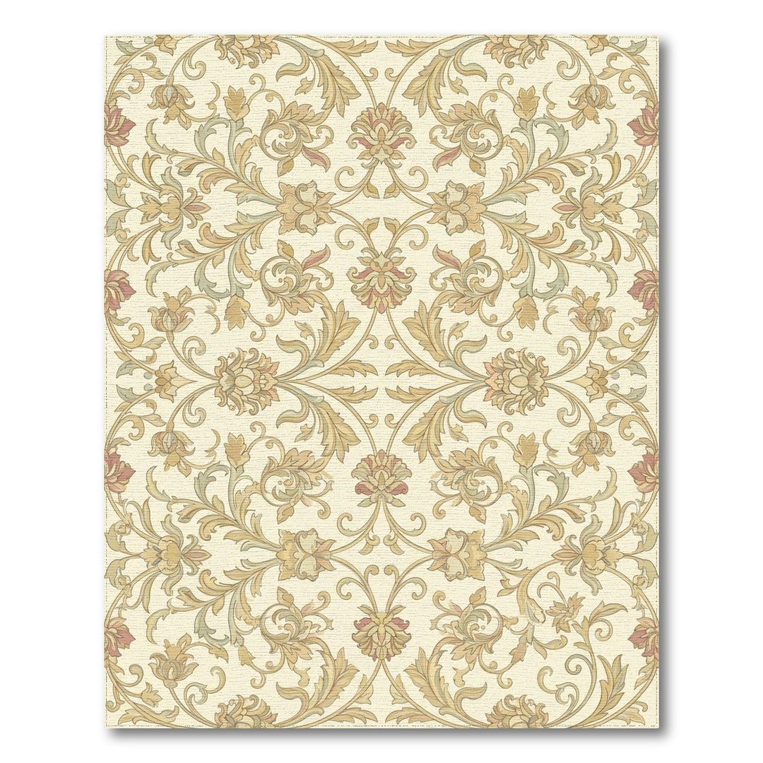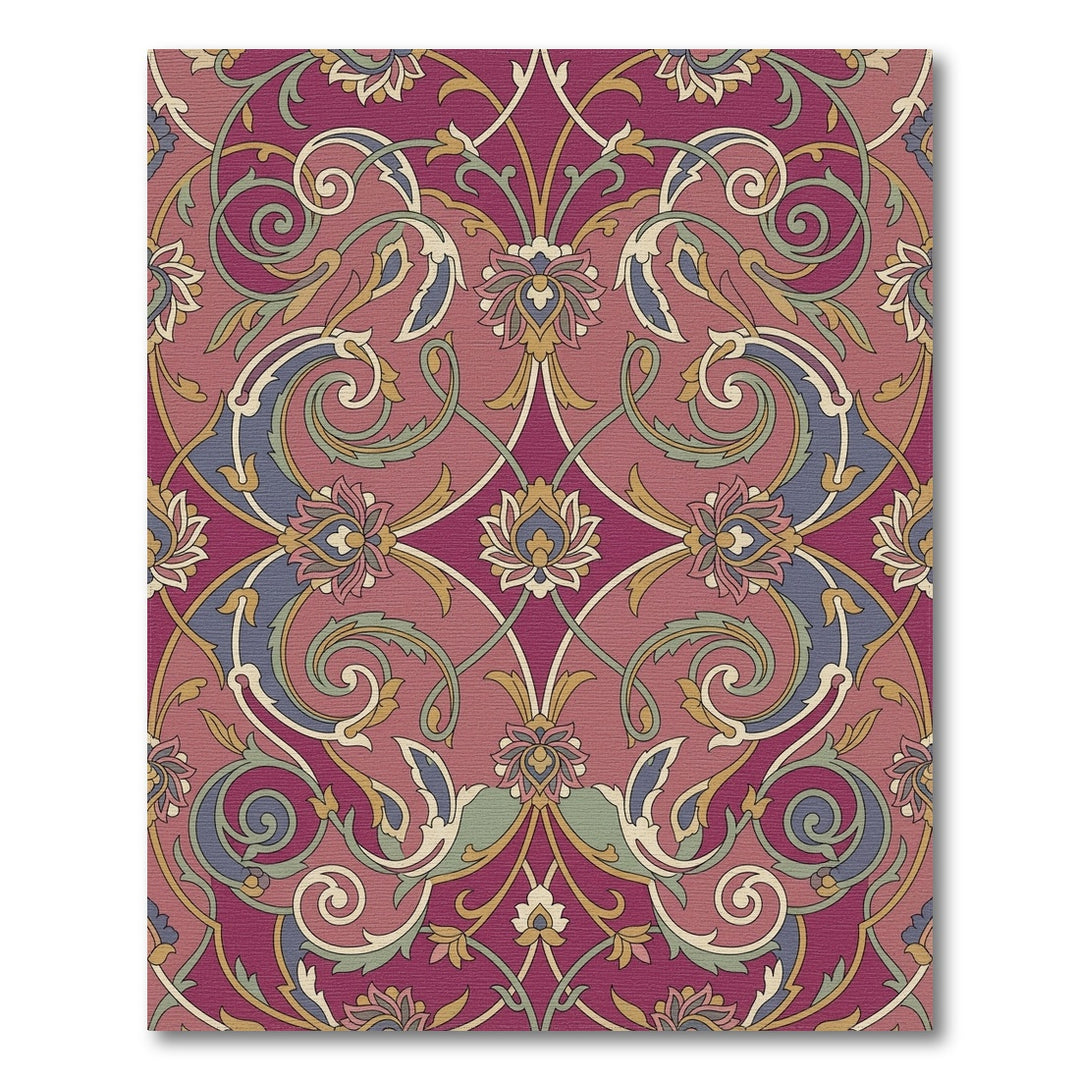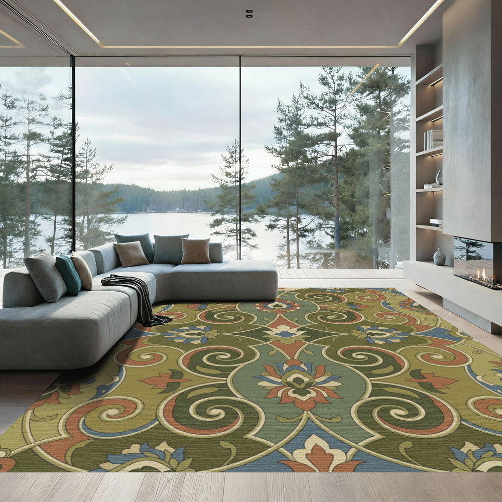 Pastel Floral Scrollwork With Lotus Bloom Rug