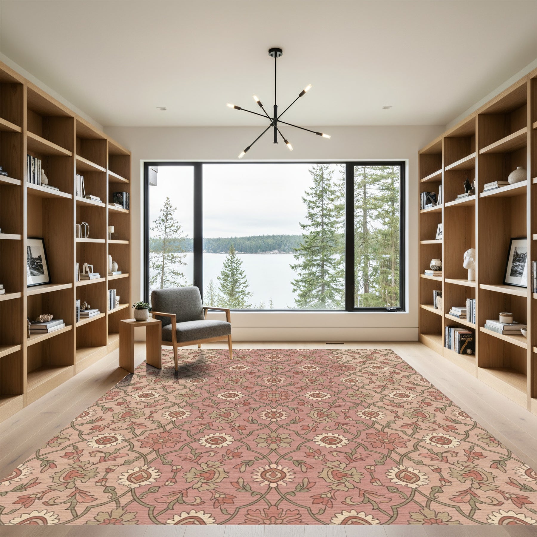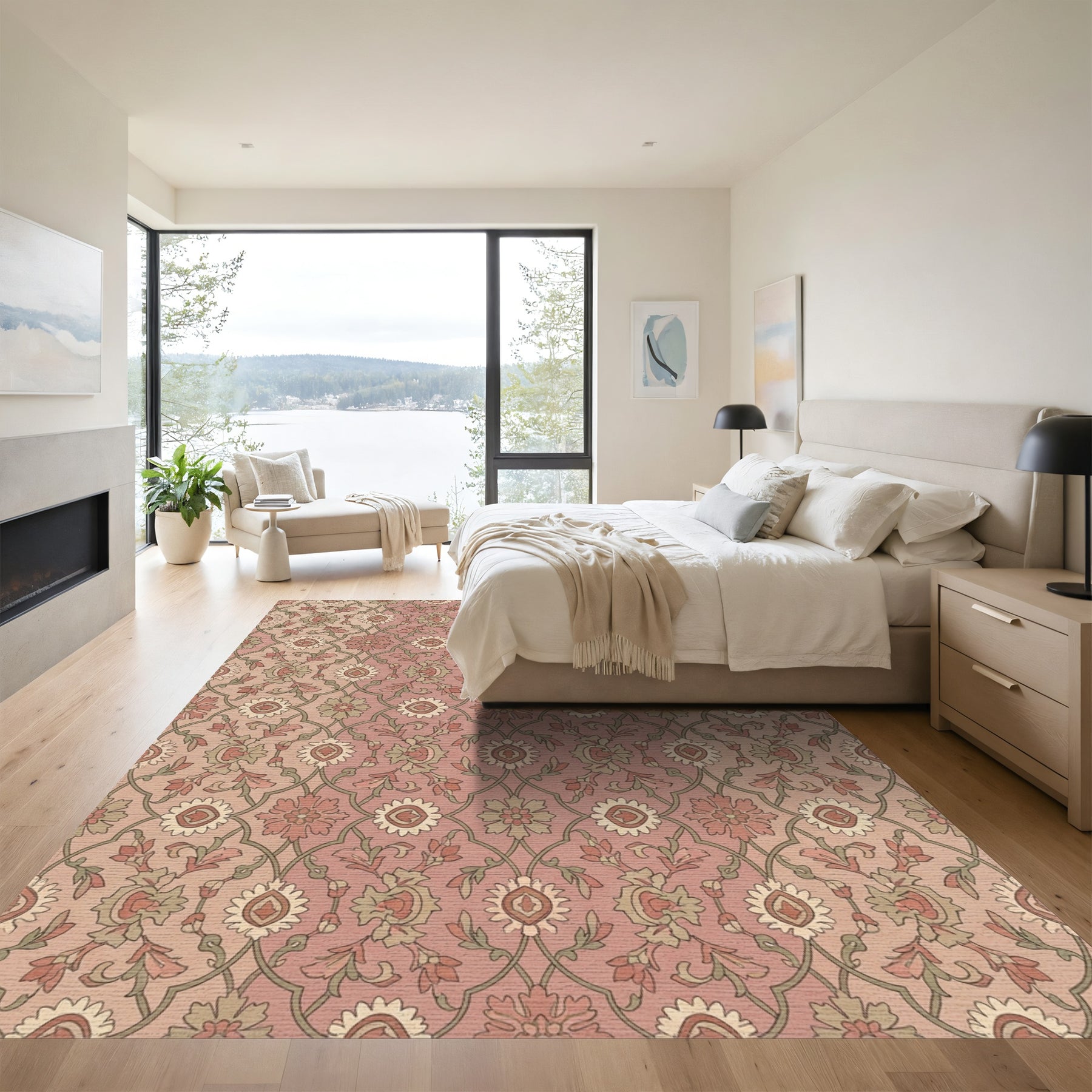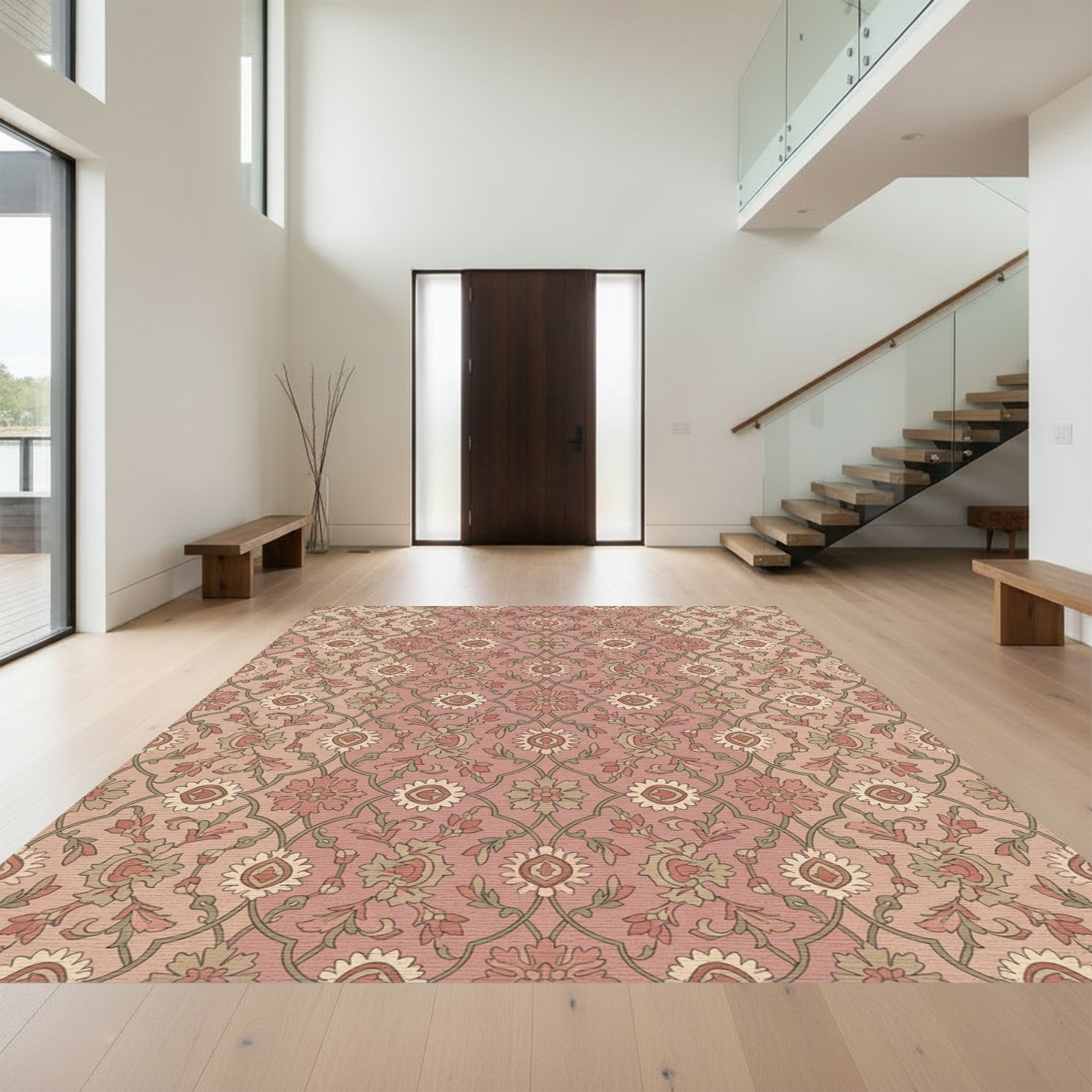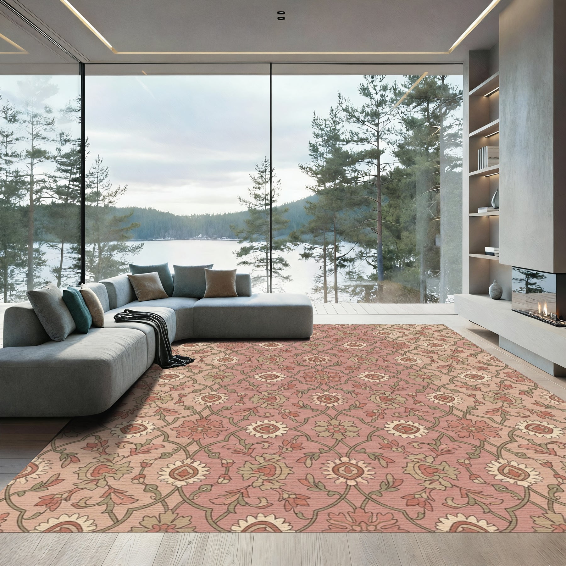 Flatwoven High Traffic Area Rug, Rose Gold Floral Lattice Medallion Rug, Non Slip, Stain Resistant, Washable Area Rugs for Living Room, Bedroom Overview: