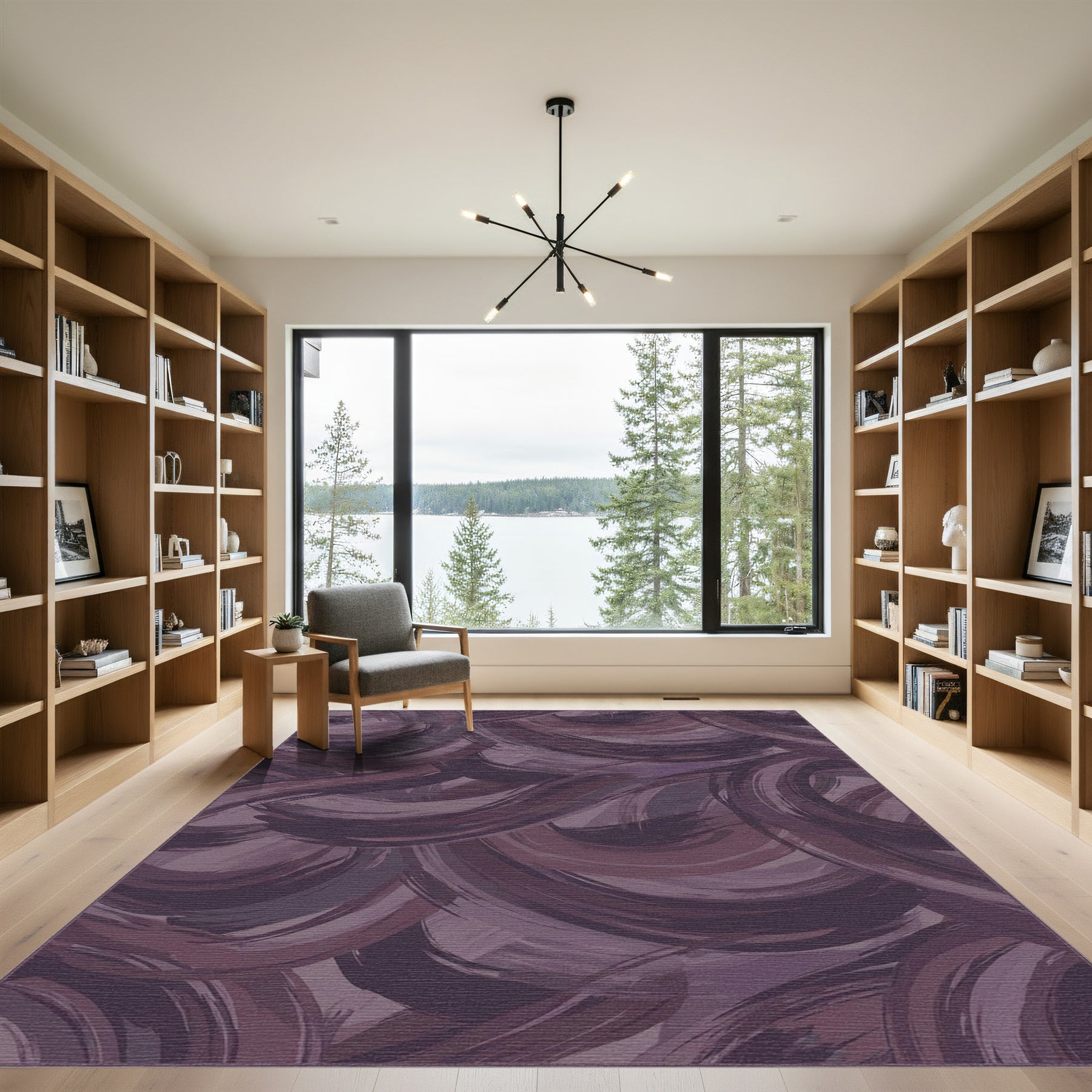 Flatwoven High Traffic Area Rug, Deep Plum Brushstroke Swirls Rug, Non Slip, Stain Resistant, Washable Area Rugs for Living Room, Bedroom Overview: