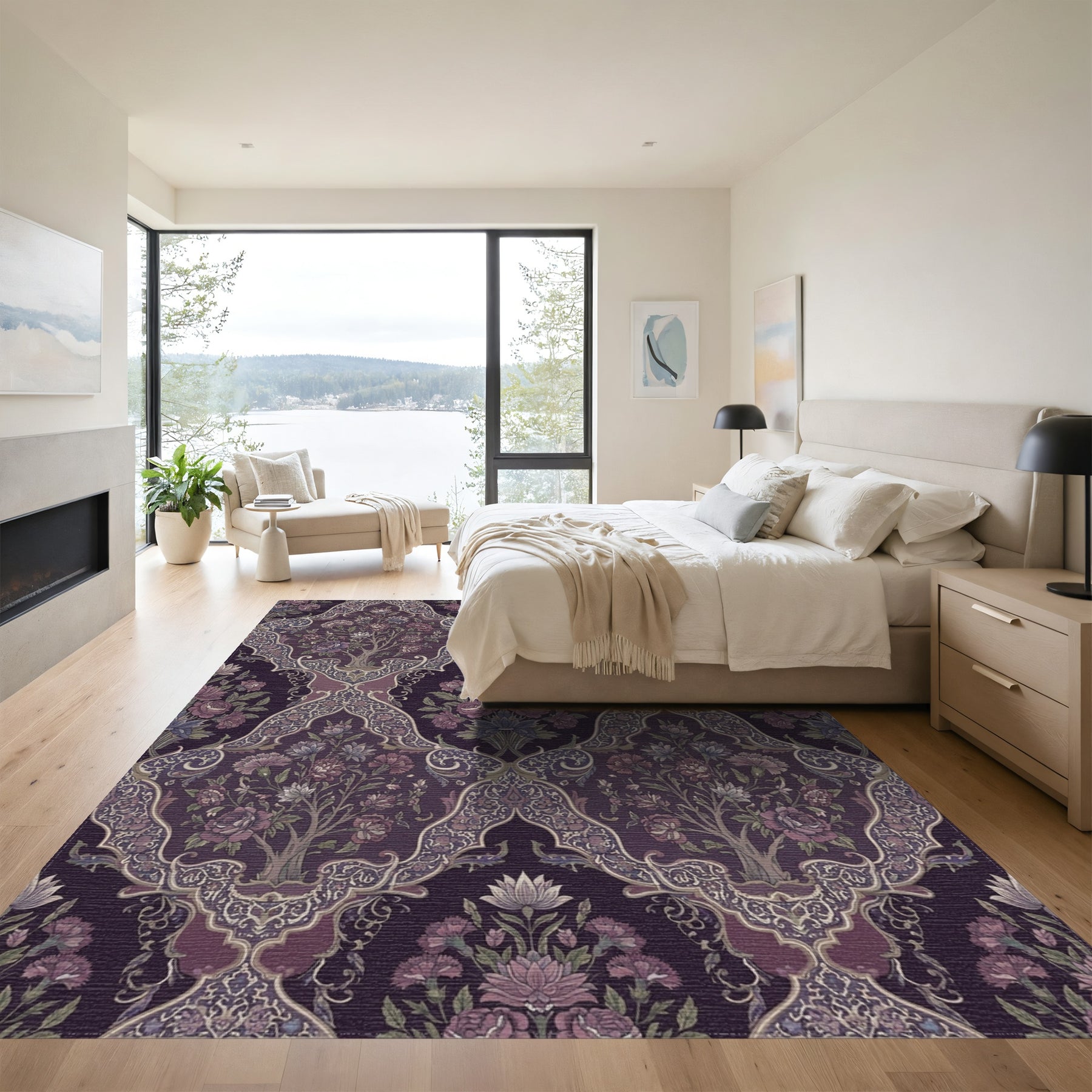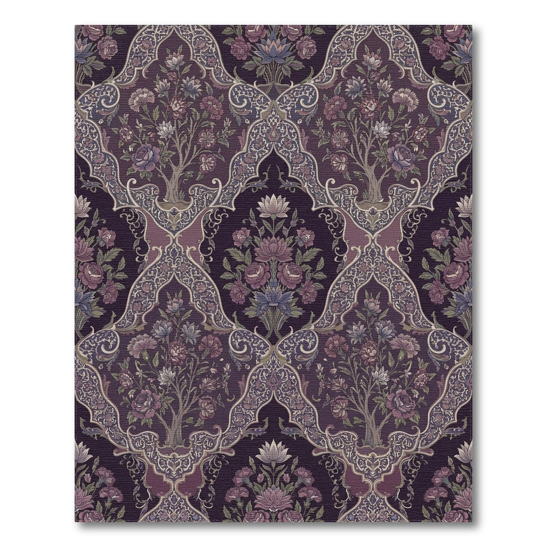 Flatwoven High Traffic Area Rug, Deep Purple Floral Lattice Garden Rug, Non Slip, Stain Resistant, Washable Area Rugs for Living Room, Bedroom Overview: