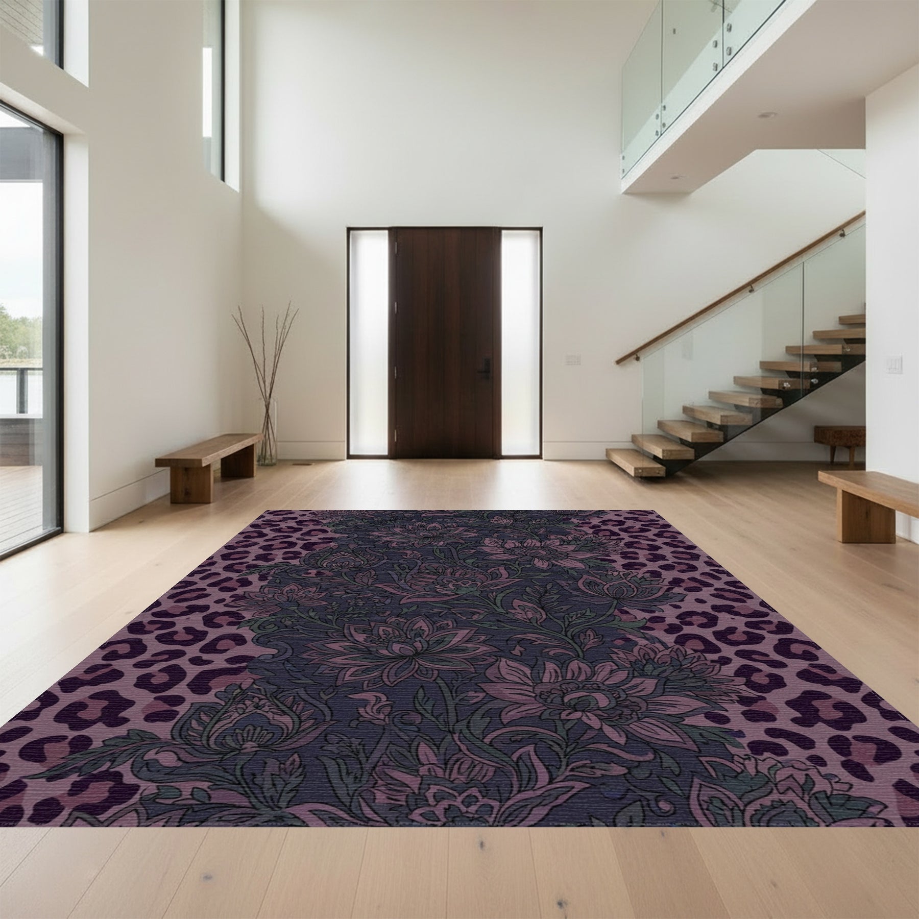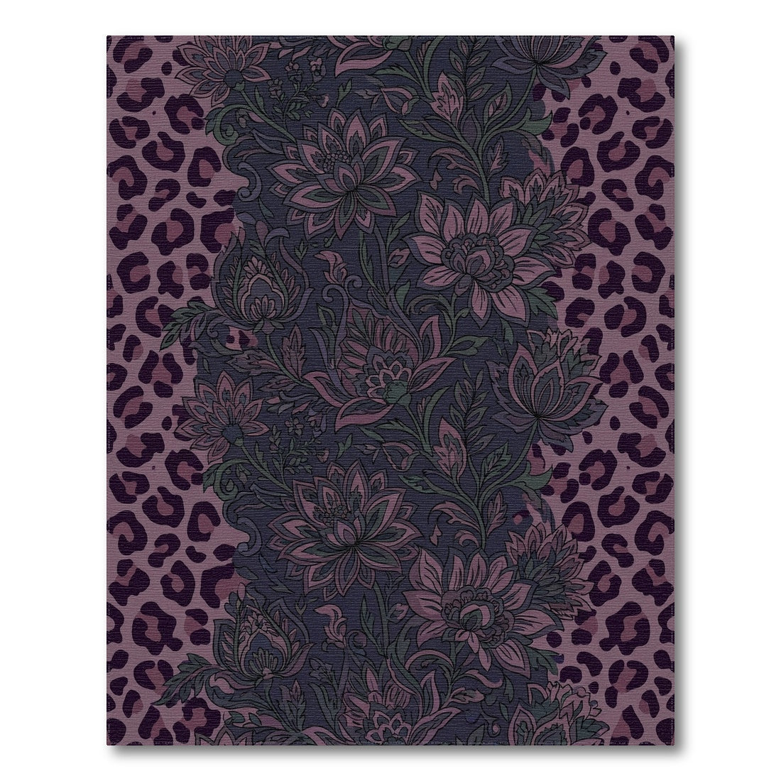 Flatwoven High Traffic Area Rug, Floral Leopard Stripe Dark Teal Rug, Non Slip, Stain Resistant, Washable Area Rugs for Living Room, Bedroom Overview: