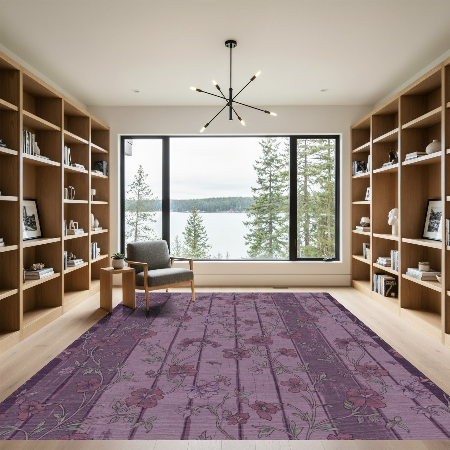 Flatwoven High Traffic Area Rug, Mauve Floral Vine Wood Grain Rug, Non Slip, Stain Resistant, Washable Area Rugs for Living Room, Bedroom Overview: