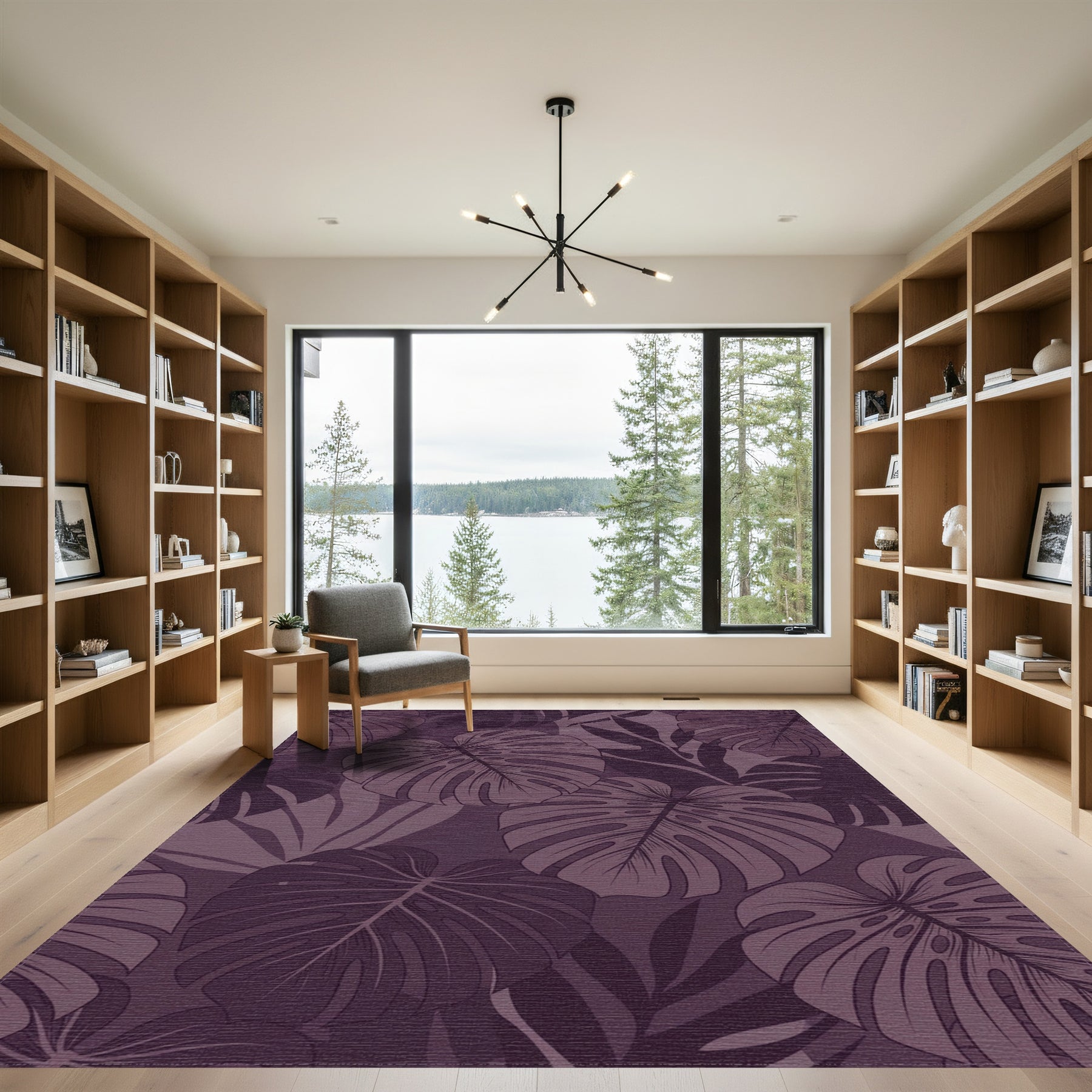 Flatwoven High Traffic Area Rug, Monstera Leaf Violet Tropical Canopy Rug, Non Slip, Stain Resistant, Washable Area Rugs for Living Room, Bedroom Overview: