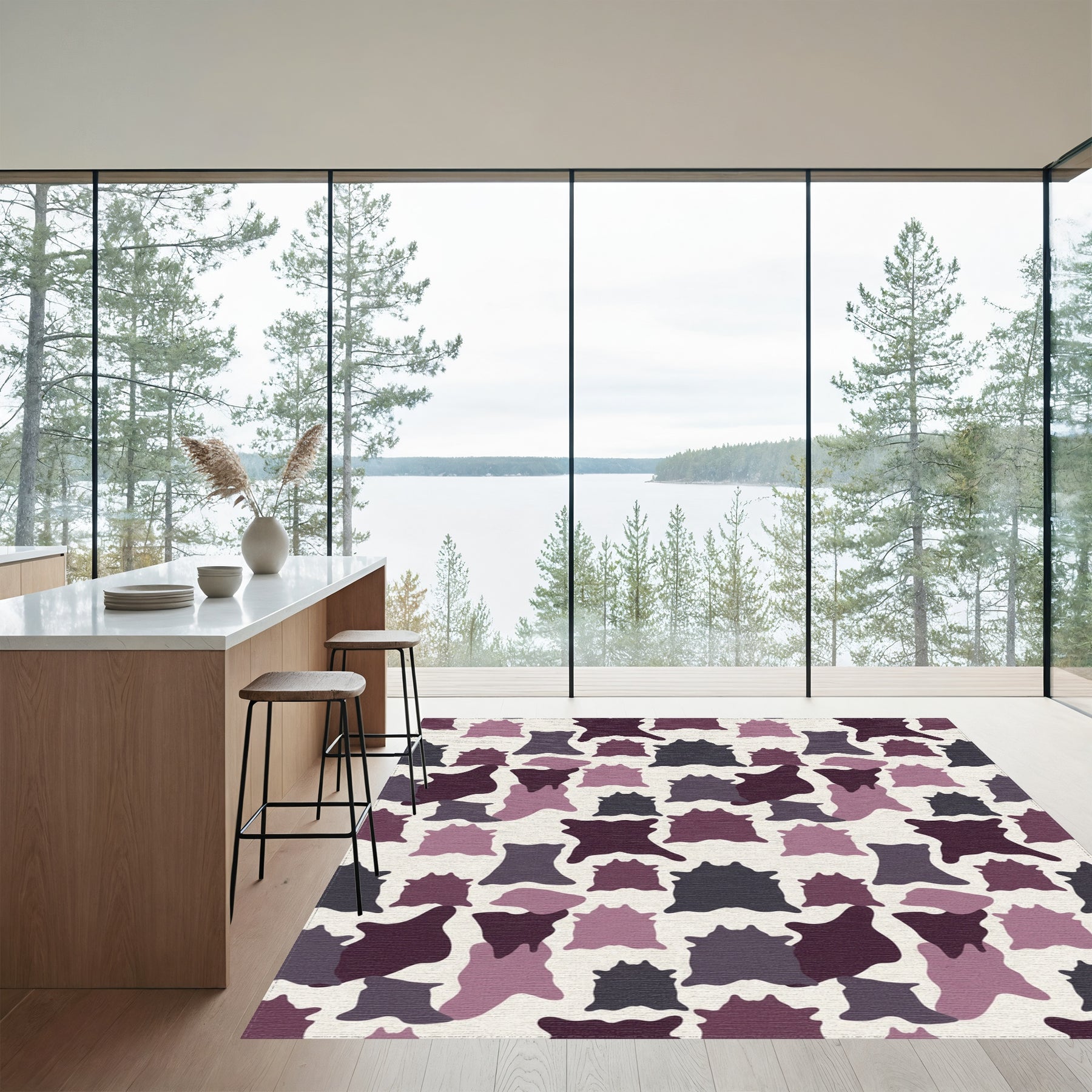 Flatwoven High Traffic Area Rug, Plum Orchid Hide Patchwork Rug, Non Slip, Stain Resistant, Washable Area Rugs for Living Room, Bedroom Overview:
