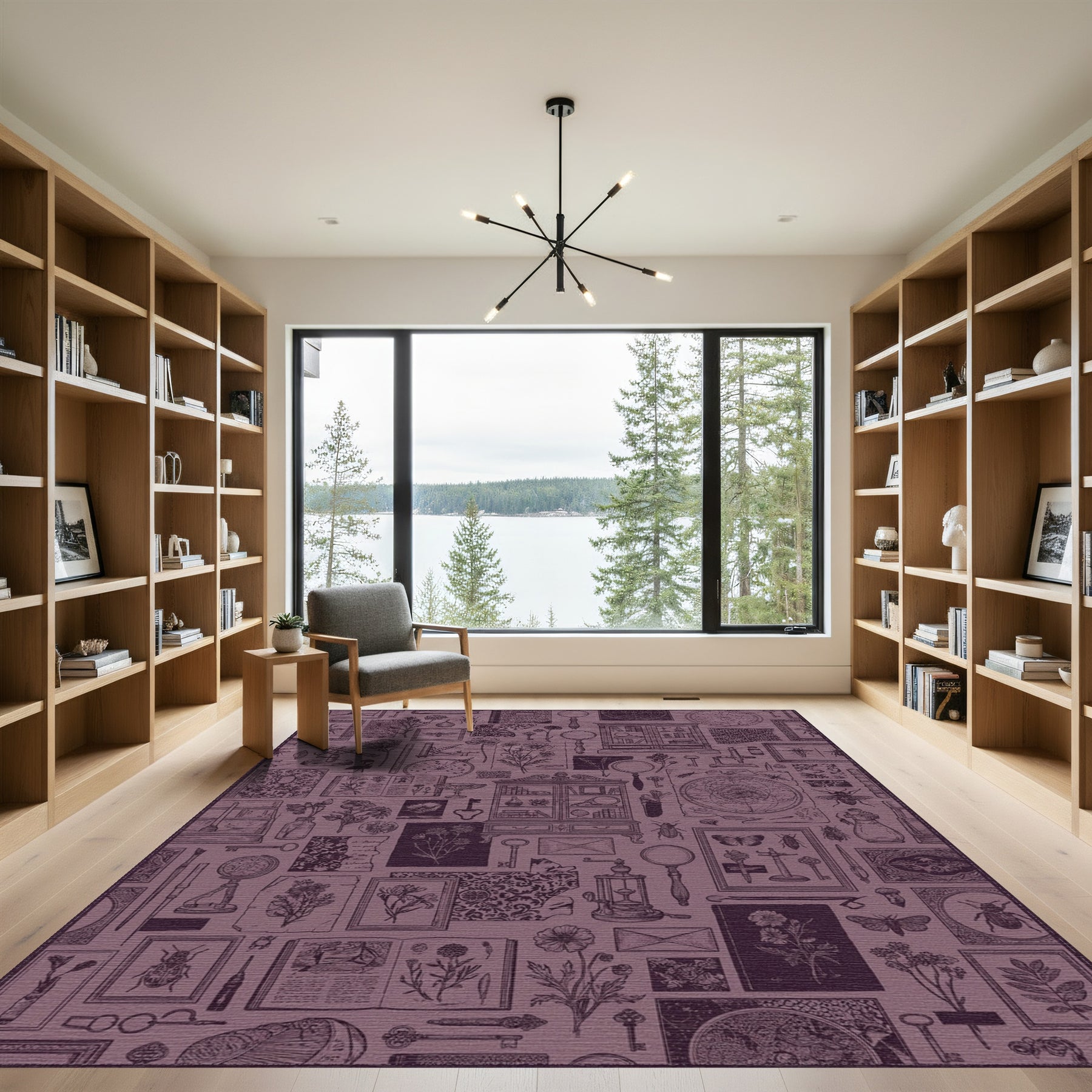 Flatwoven High Traffic Area Rug, Vintage Ink Scientific Illustration Collage Rug, Non Slip, Stain Resistant, Washable Area Rugs for Living Room, Bedroom Overview: