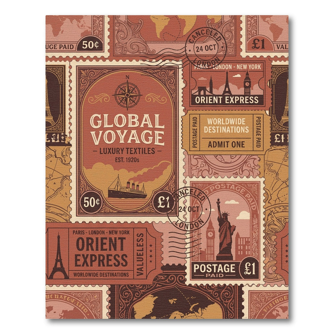 Vintage Travel Stamp Collage Rug