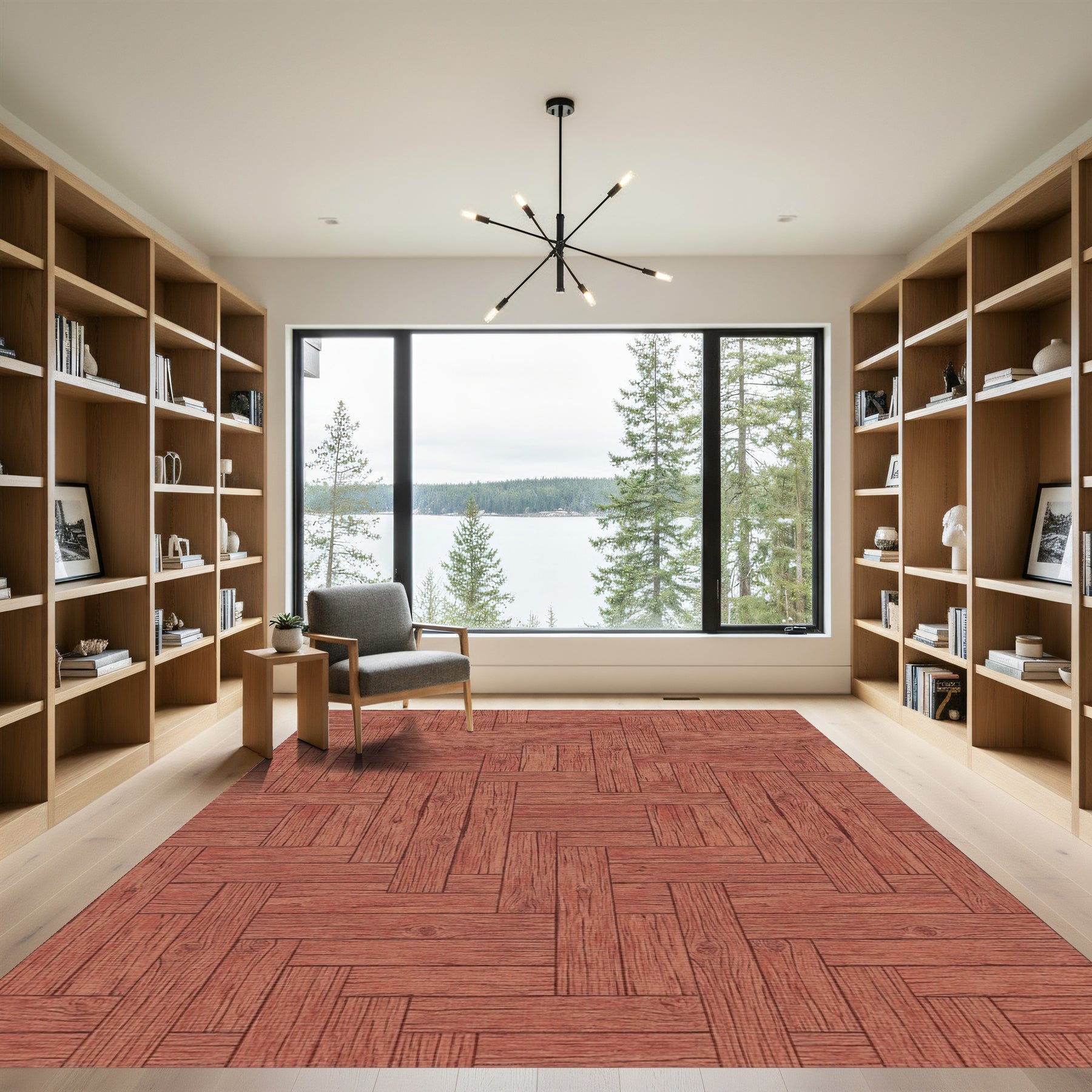 Flatwoven High Traffic Area Rug, Rustic Wood Grain Parquet Rug, Non Slip, Stain Resistant, Washable Area Rugs for Living Room, Bedroom Overview: