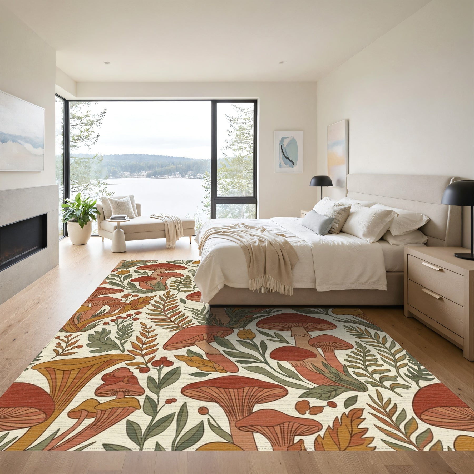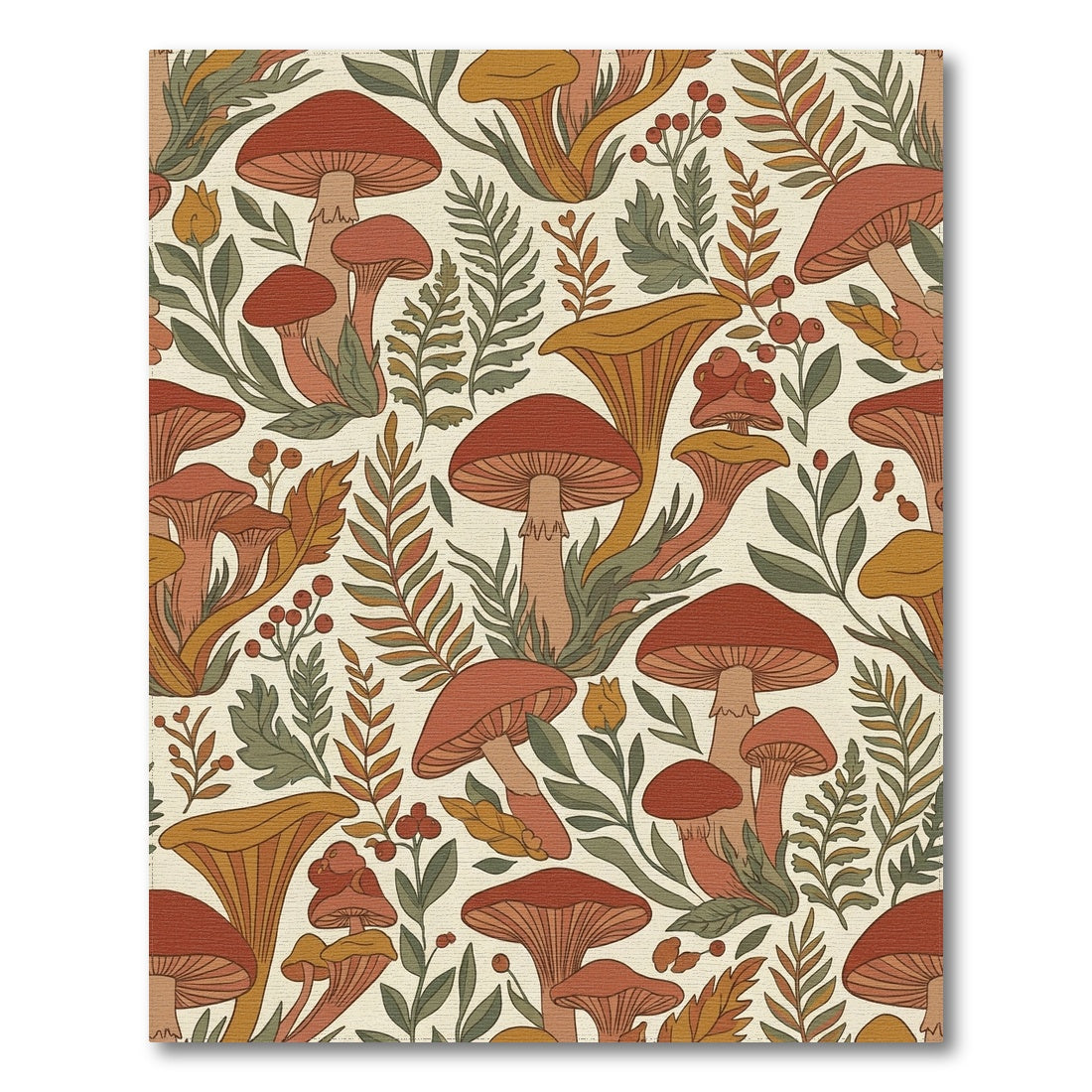 Flatwoven High Traffic Area Rug, Rusty Mushroom Forest Foliage Scene Rug, Non Slip, Stain Resistant, Washable Area Rugs for Living Room, Bedroom Overview: