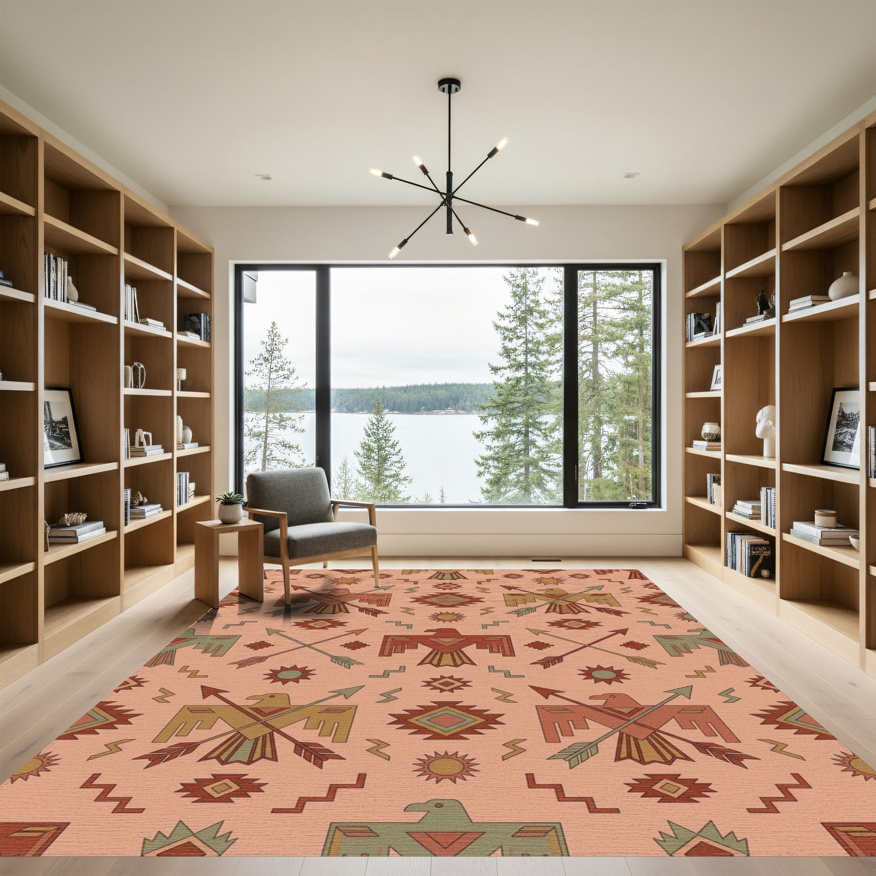 Flatwoven High Traffic Area Rug, Southwestern Thunderbird Arrows Sun Rug, Non Slip, Stain Resistant, Washable Area Rugs for Living Room, Bedroom Overview:
