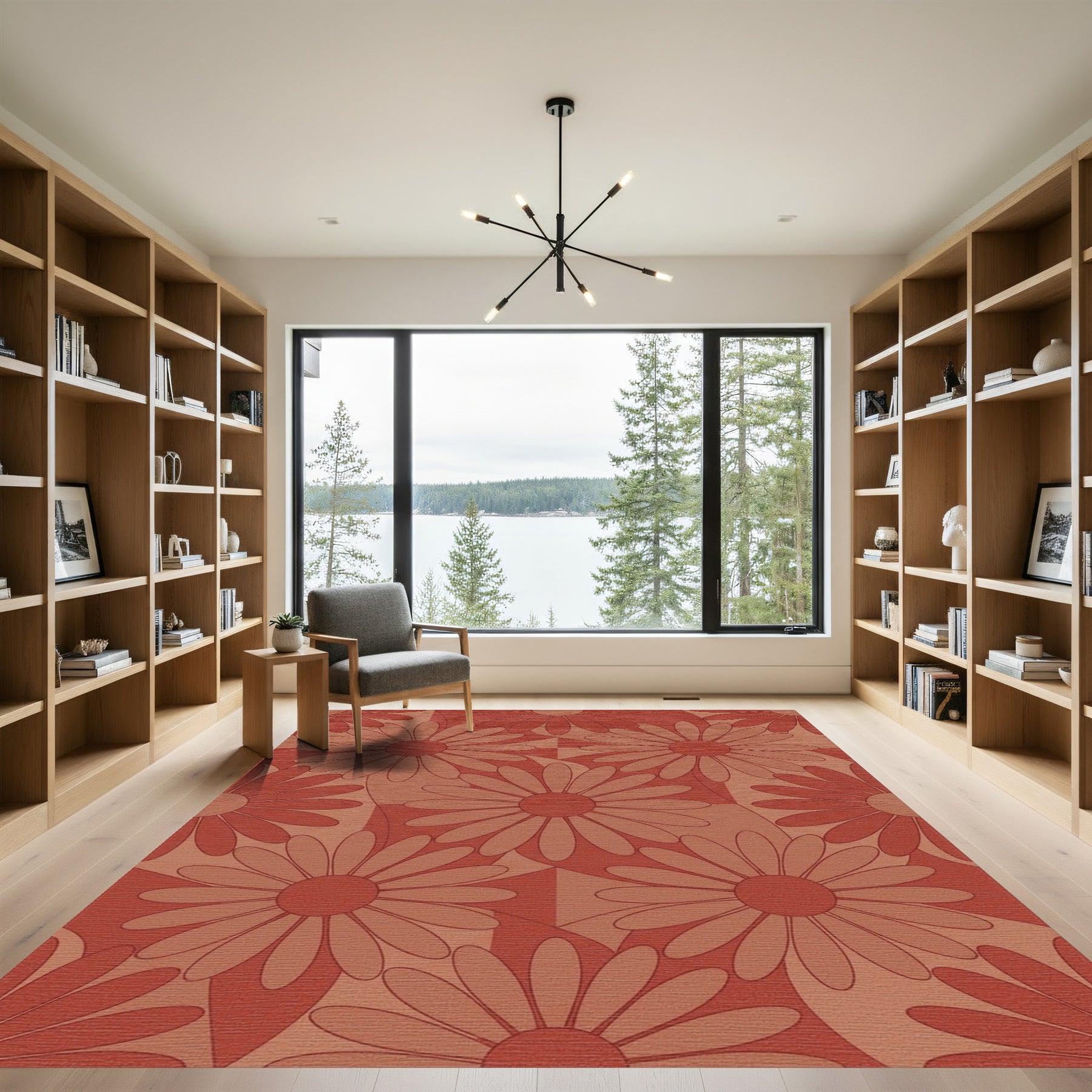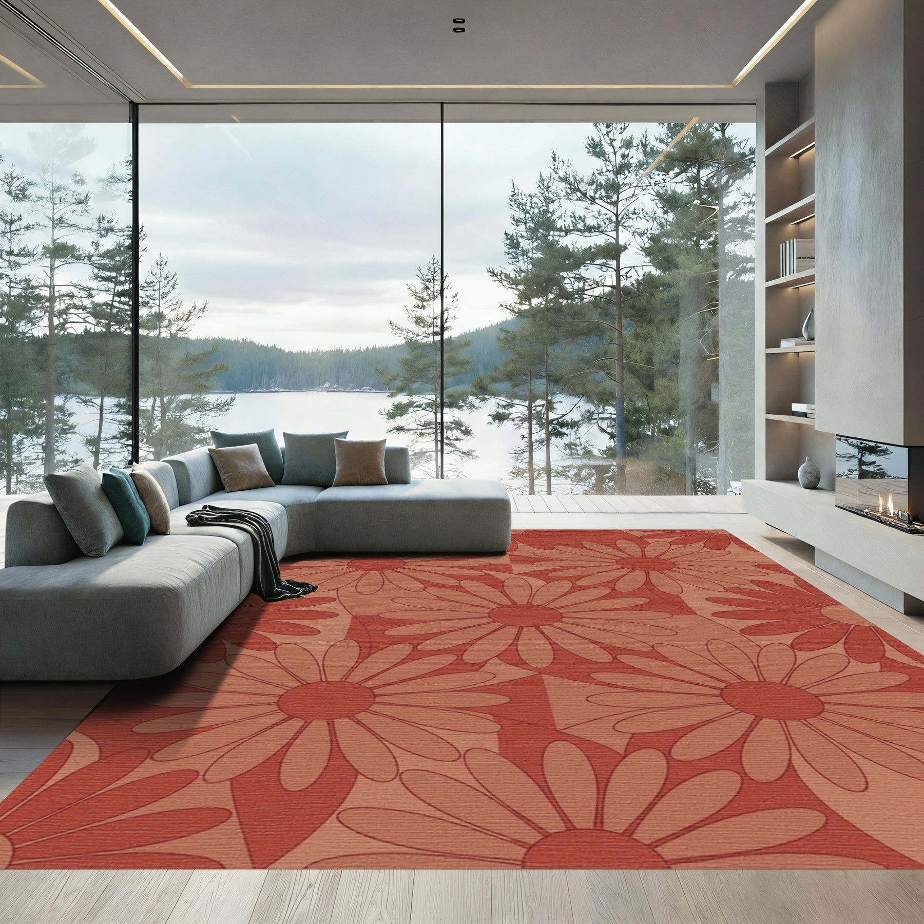 Flatwoven High Traffic Area Rug, Terracotta Daisy Flower Meadow Rug, Non Slip, Stain Resistant, Washable Area Rugs for Living Room, Bedroom Overview: