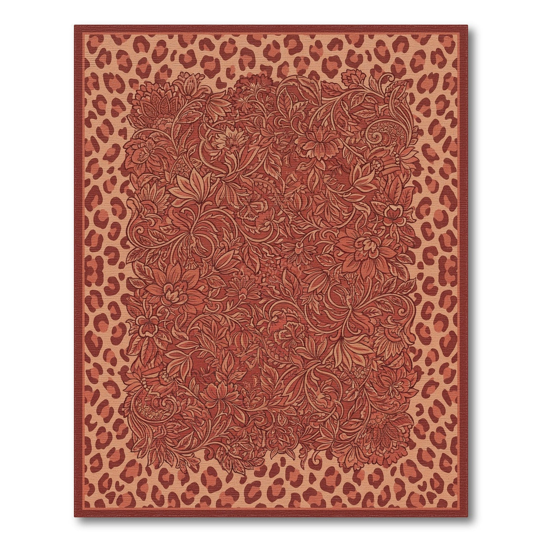 Terracotta Floral Leopard Garden Rug
