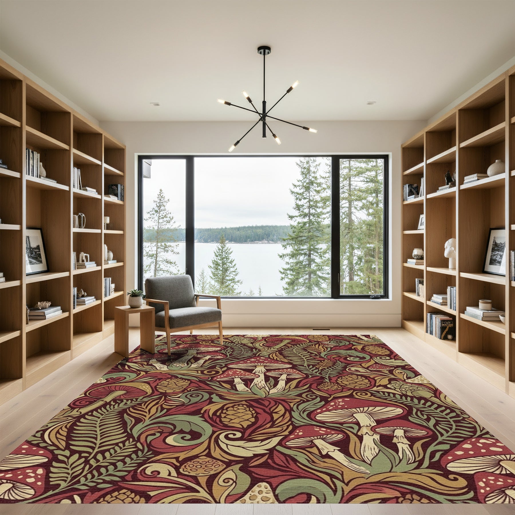 Flatwoven High Traffic Area Rug, Forest Mushroom Botanical Garden Rug, Non Slip, Stain Resistant, Washable Area Rugs for Living Room, Bedroom Overview: