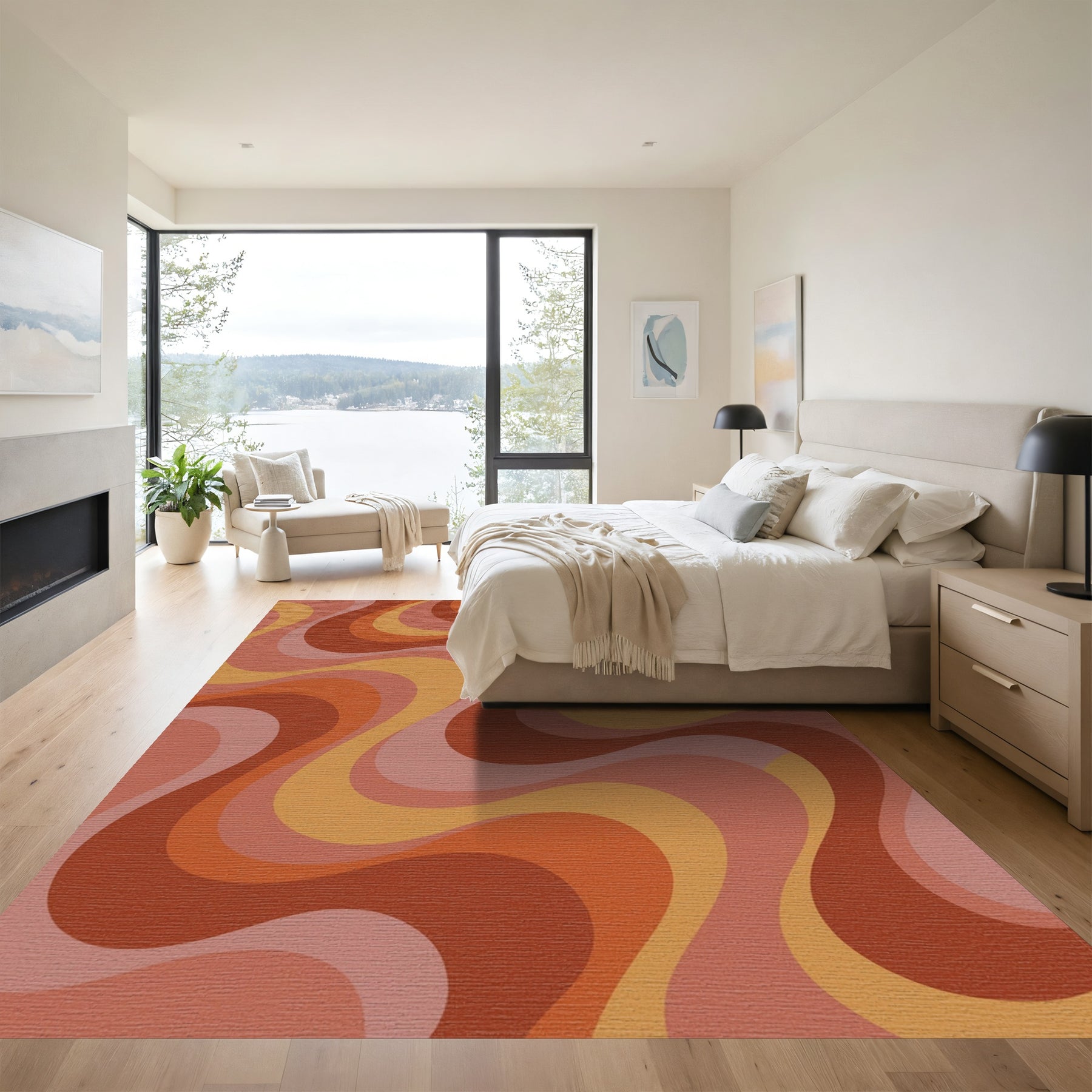Flatwoven High Traffic Area Rug, Retro Earth Tone Swirl Rug, Non Slip, Stain Resistant, Washable Area Rugs for Living Room, Bedroom Overview: