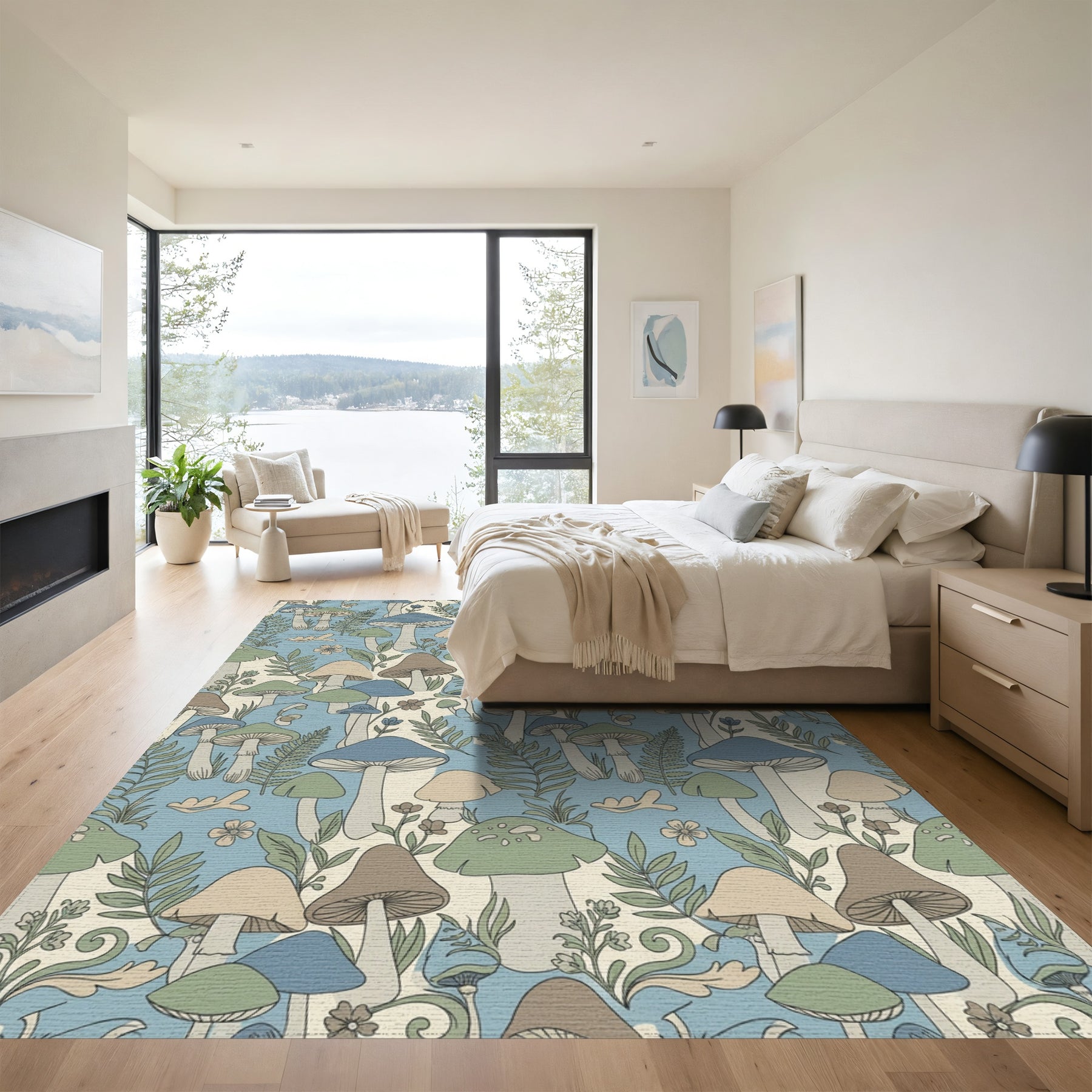 Flatwoven High Traffic Area Rug, Whimsical Mushroom Forest Woodland Scene Rug, Non Slip, Stain Resistant, Washable Area Rugs for Living Room, Bedroom Overview: