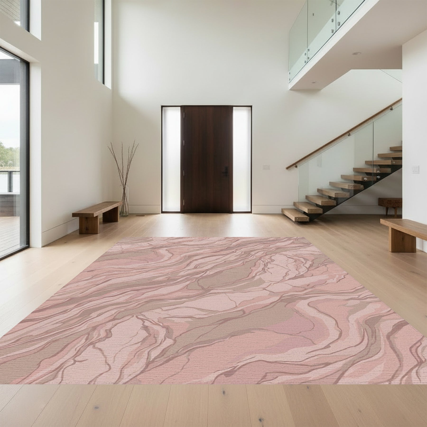 Flatwoven High Traffic Area Rug, Blush Pink Marble Vein Abstract Rug, Non Slip, Stain Resistant, Washable Area Rugs for Living Room, Bedroom Overview: