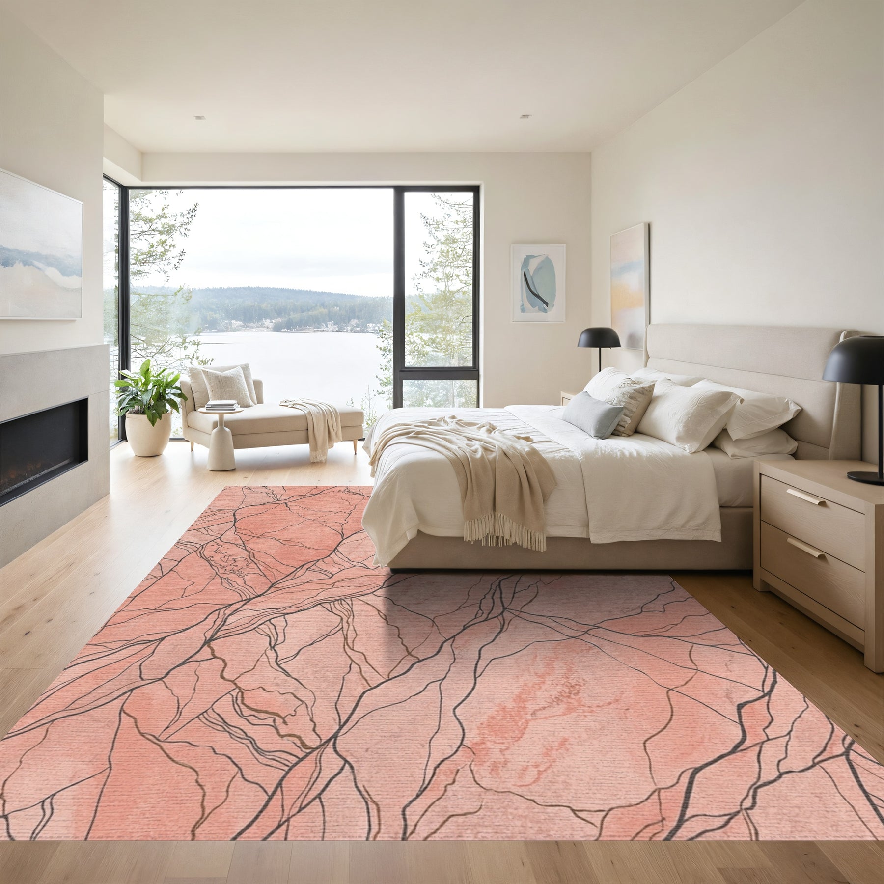 Coral Pink Stone Veins Rug
