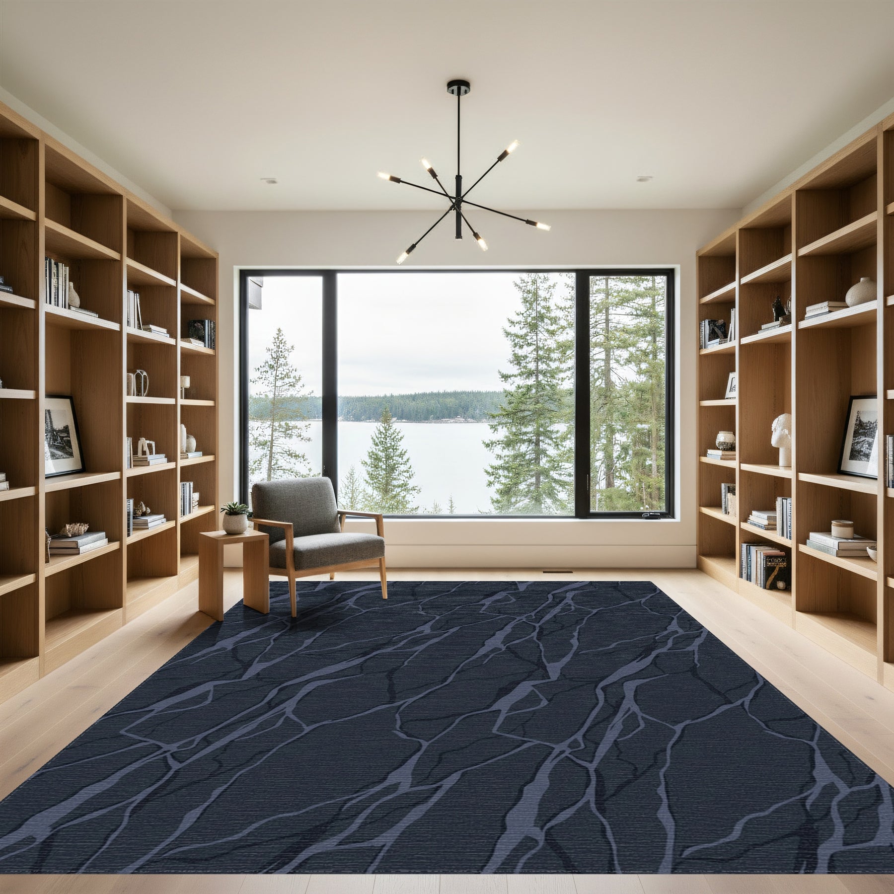 Flatwoven High Traffic Area Rug, Deep Blue Marble Vein Rug, Non Slip, Stain Resistant, Washable Area Rugs for Living Room, Bedroom Overview: