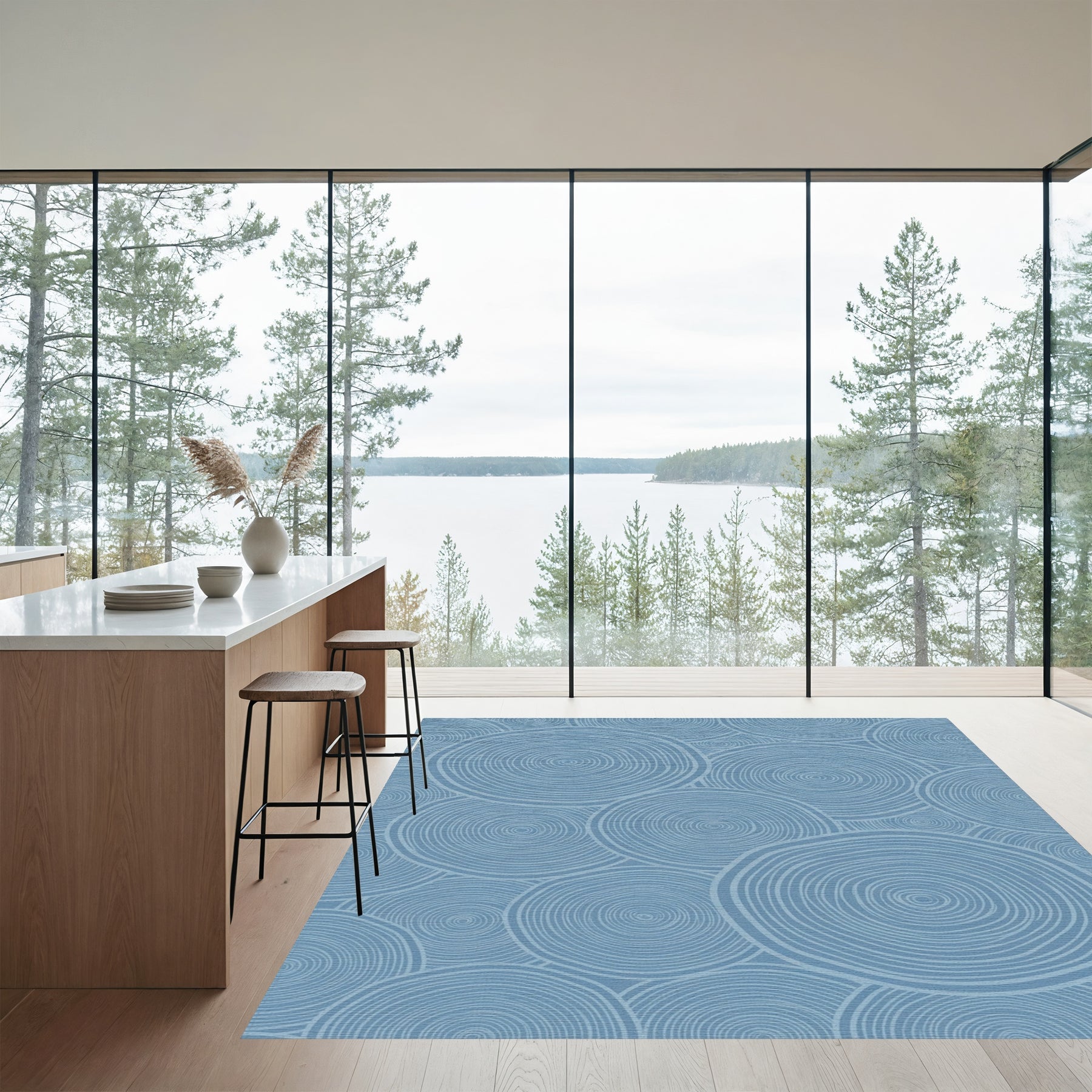 Dusty Blue Swirling Circles Rug
