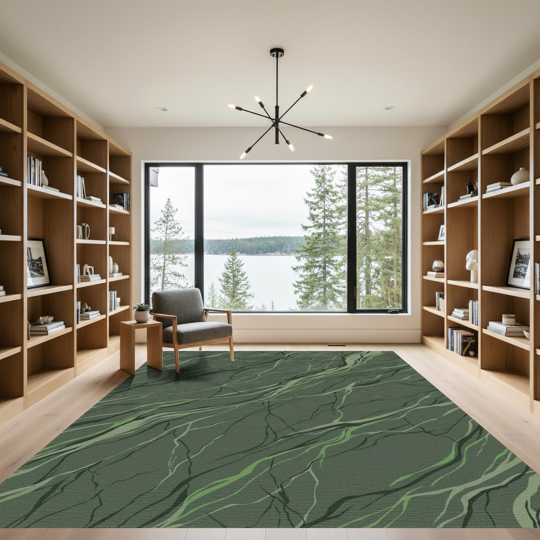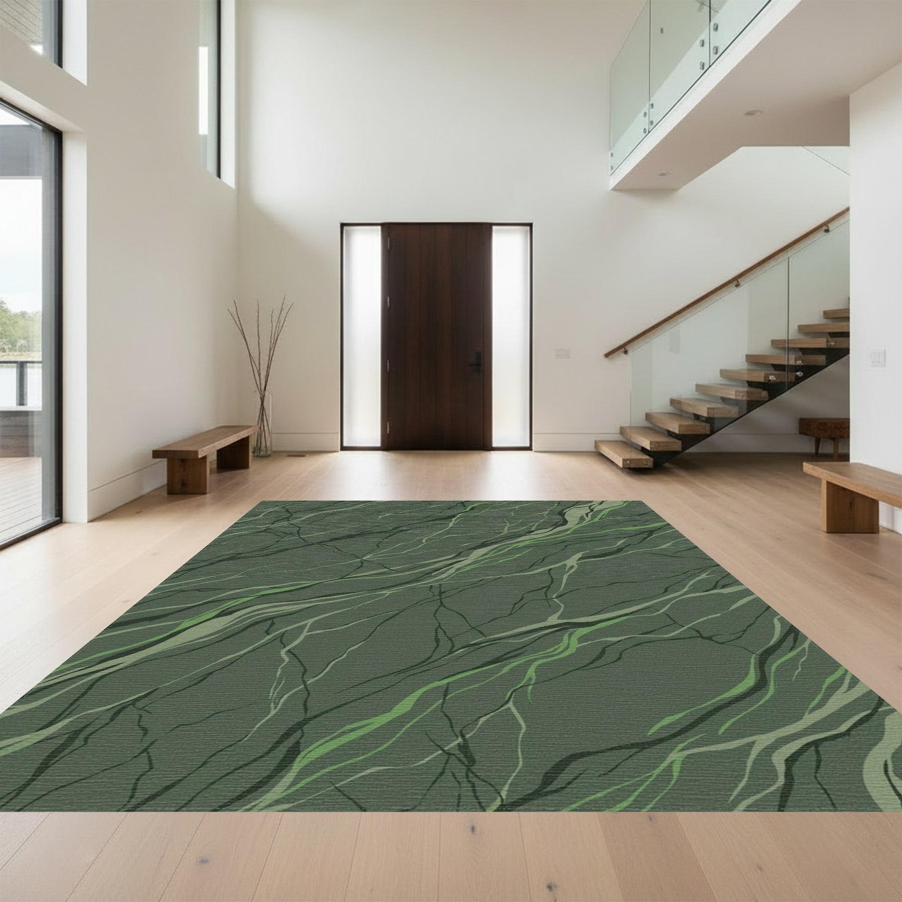 Flatwoven High Traffic Area Rug, Earthy Green Abstract Root Twig Rug, Non Slip, Stain Resistant, Washable Area Rugs for Living Room, Bedroom Overview:
