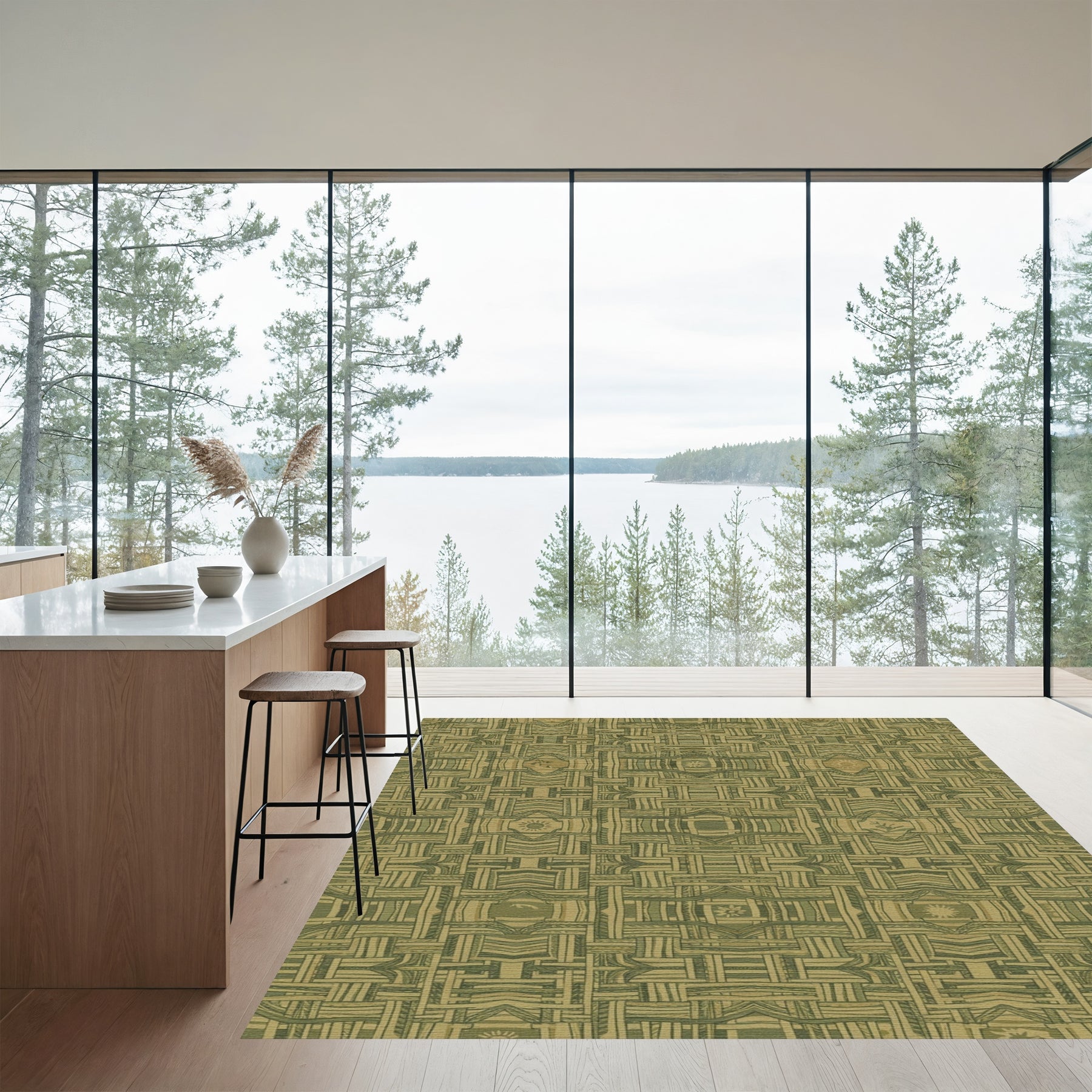 Flatwoven High Traffic Area Rug, Rustic Woven Lattice Sun Medallion Rug, Non Slip, Stain Resistant, Washable Area Rugs for Living Room, Bedroom Overview: