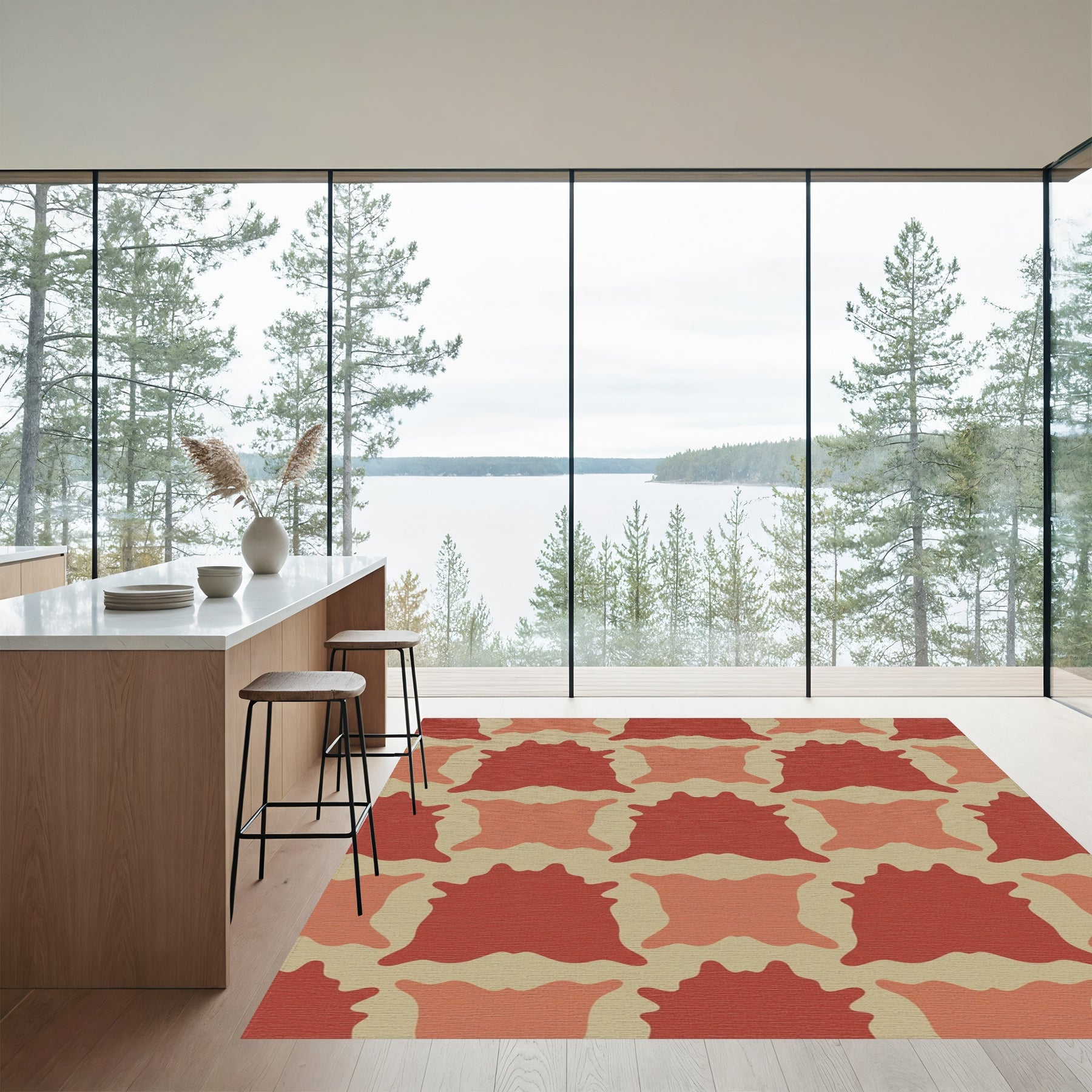 Flatwoven High Traffic Area Rug, Terracotta Red Patchwork Contemporary Rug, Non Slip, Stain Resistant, Washable Area Rugs for Living Room, Bedroom Overview: