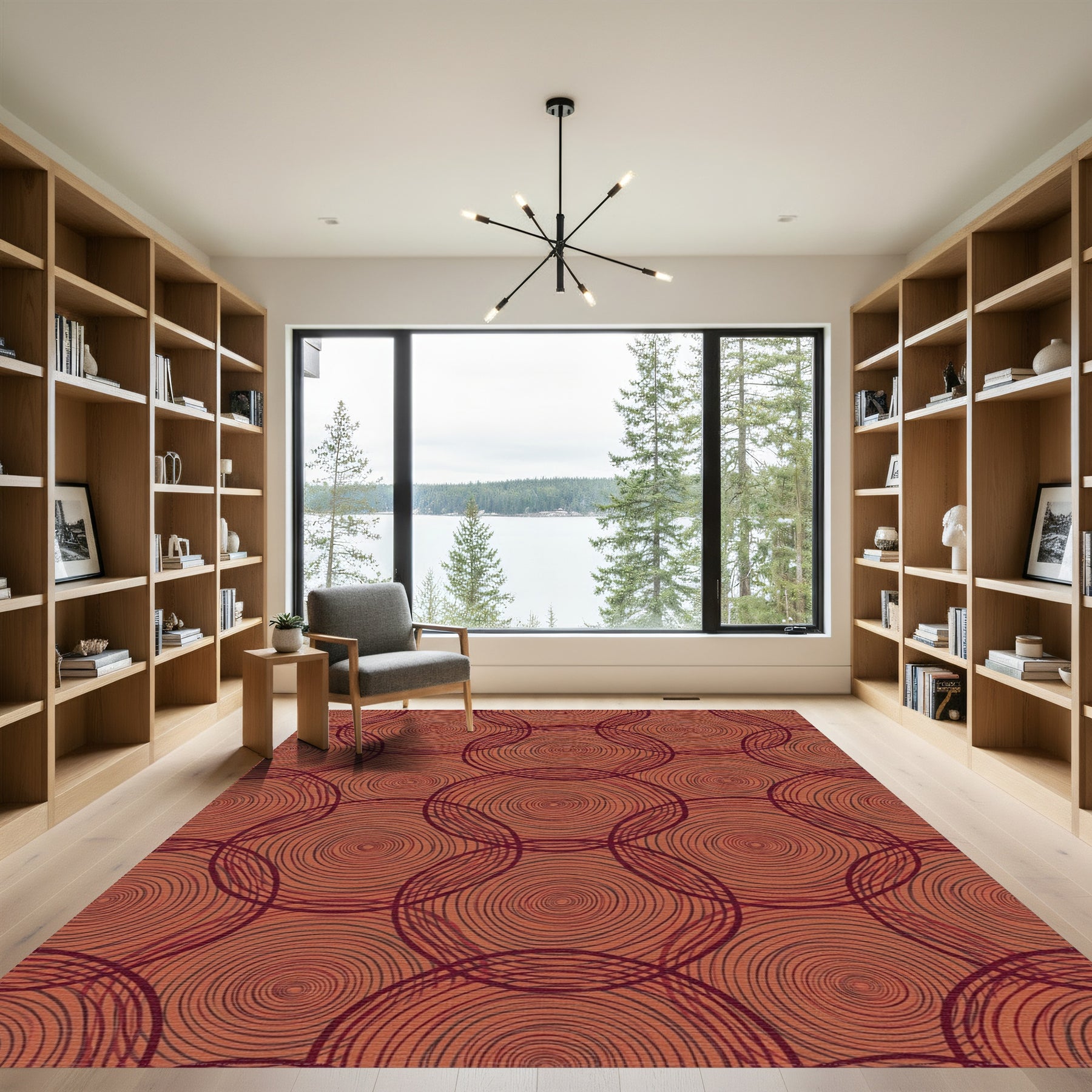 Flatwoven High Traffic Area Rug, Terracotta Swirling Circle Overlapping Rug, Non Slip, Stain Resistant, Washable Area Rugs for Living Room, Bedroom Overview: