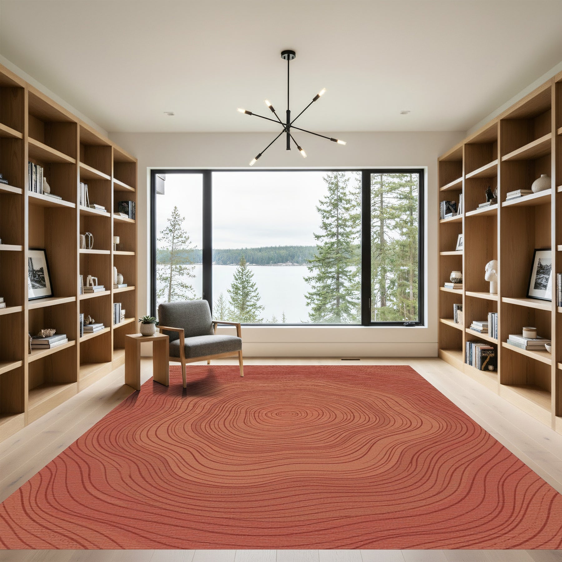 Flatwoven High Traffic Area Rug, Terracotta Wood Grain Circles Rug, Non Slip, Stain Resistant, Washable Area Rugs for Living Room, Bedroom Overview: