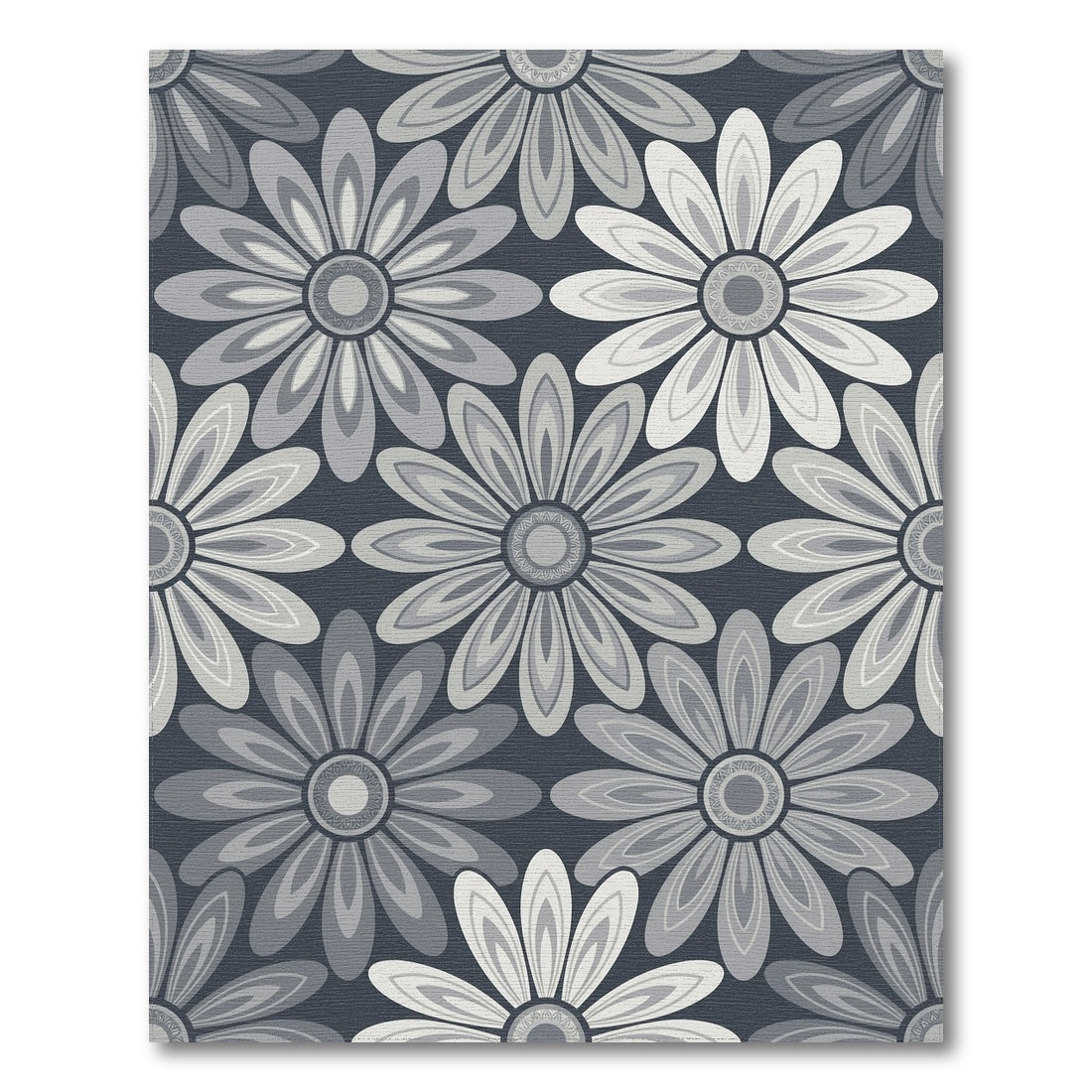 Flatwoven High Traffic Area Rug, Cool Gray Daisy Medallion Rug, Non Slip, Stain Resistant, Washable Area Rugs for Living Room, Bedroom Overview:
