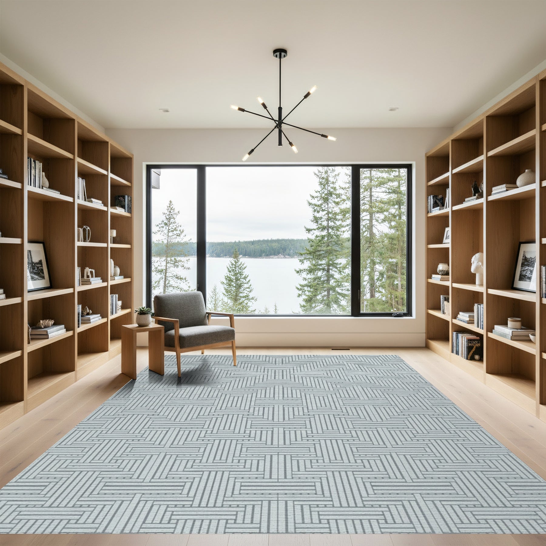 Flatwoven High Traffic Area Rug, Cool Gray Interlocking Rectangles Rug, Non Slip, Stain Resistant, Washable Area Rugs for Living Room, Bedroom Overview: