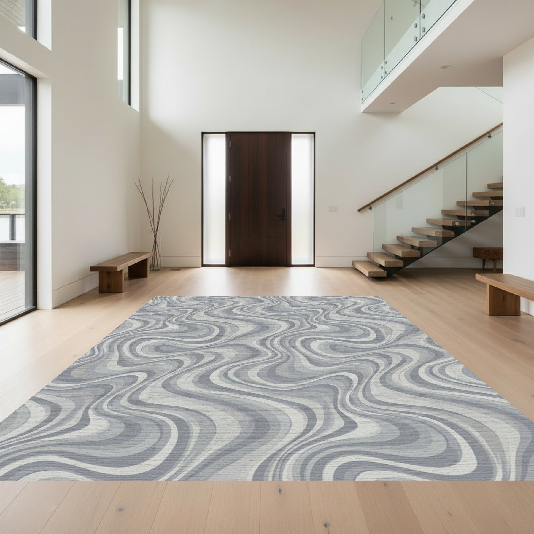 Flatwoven High Traffic Area Rug, Cool Gray Swirl Abstract Rug, Non Slip, Stain Resistant, Washable Area Rugs for Living Room, Bedroom Overview: