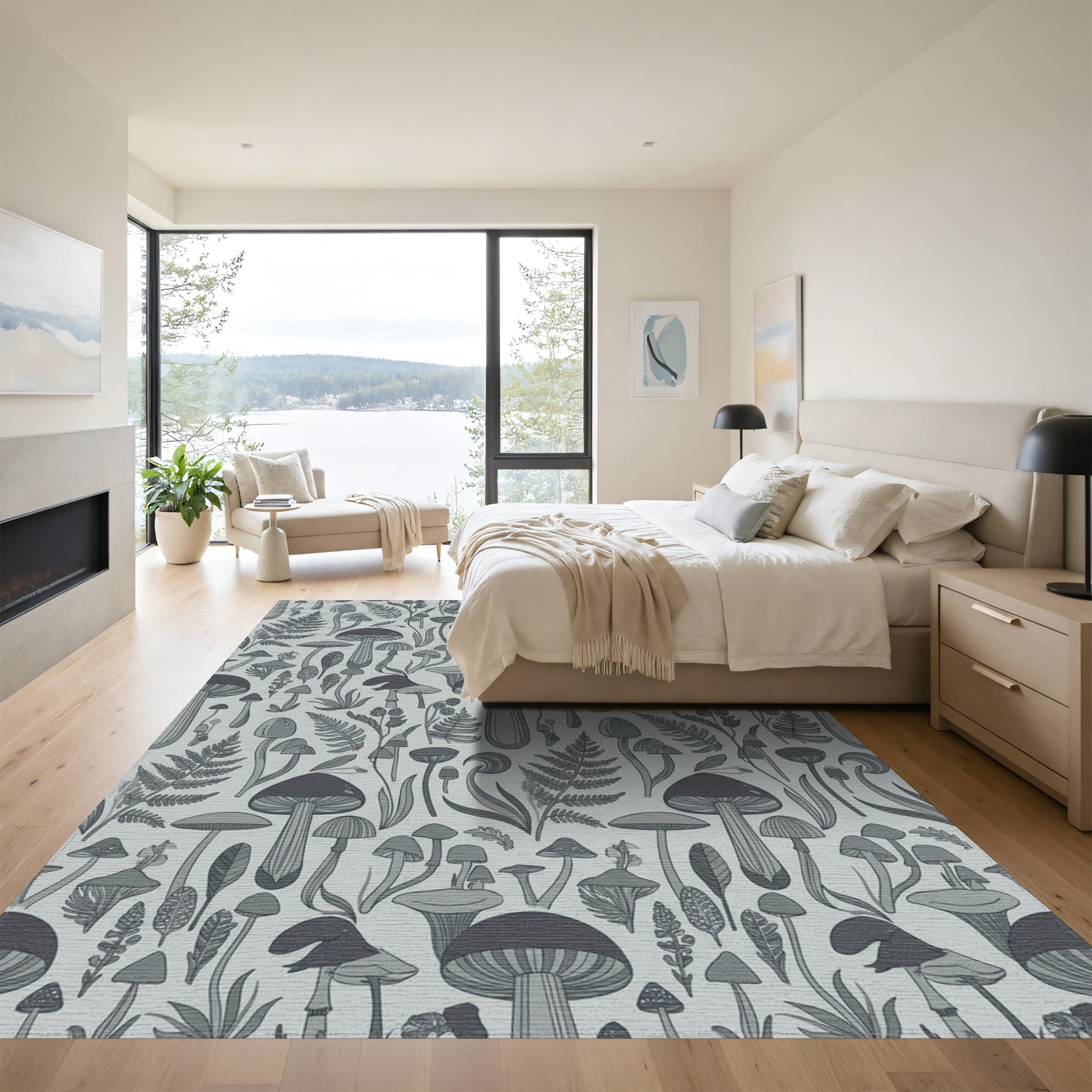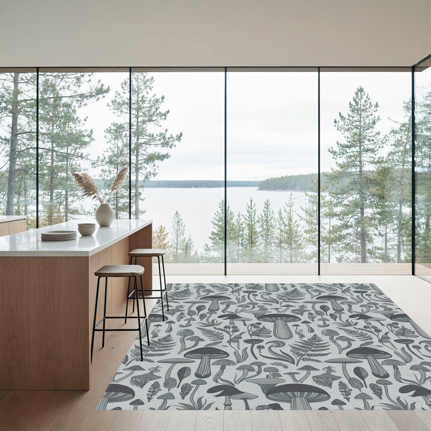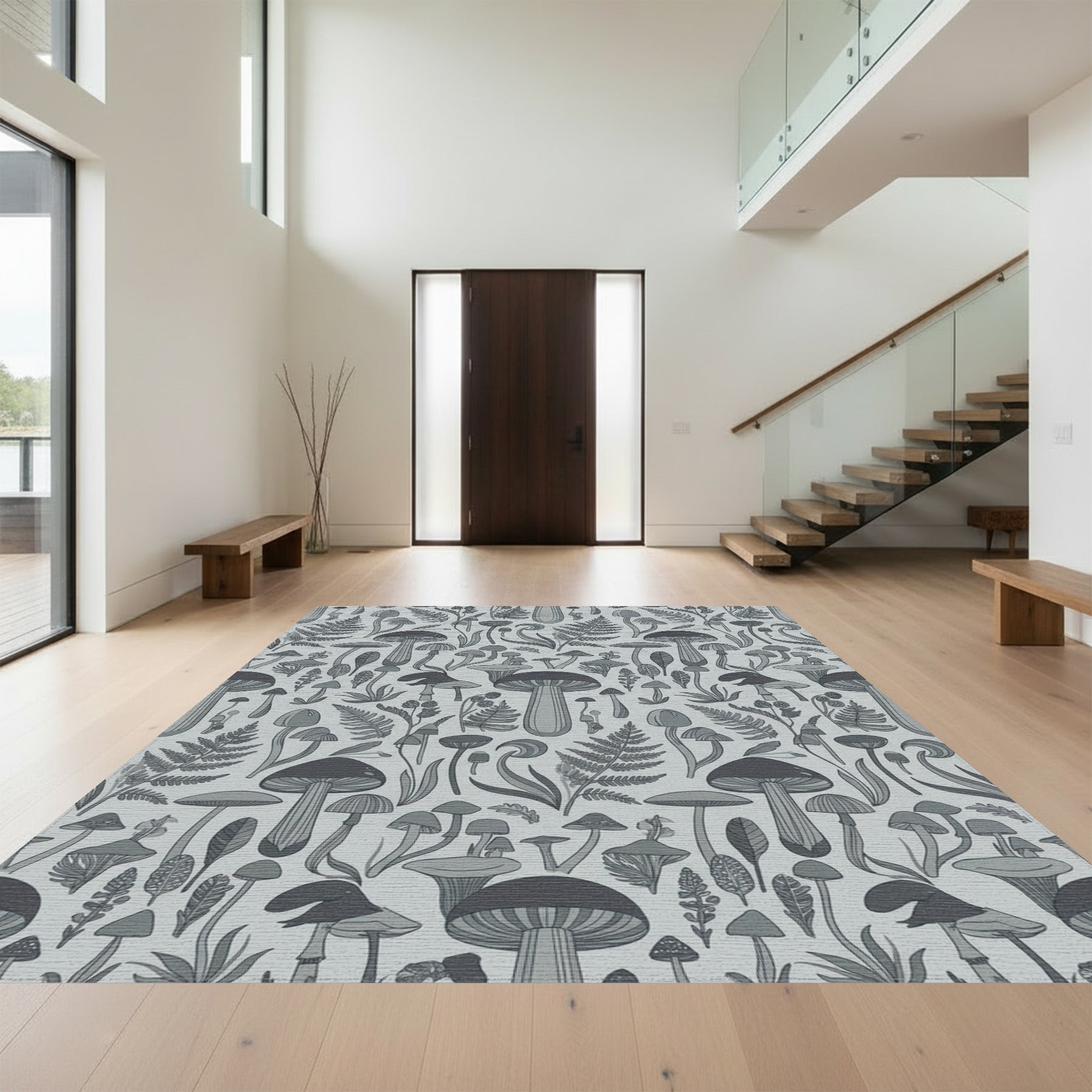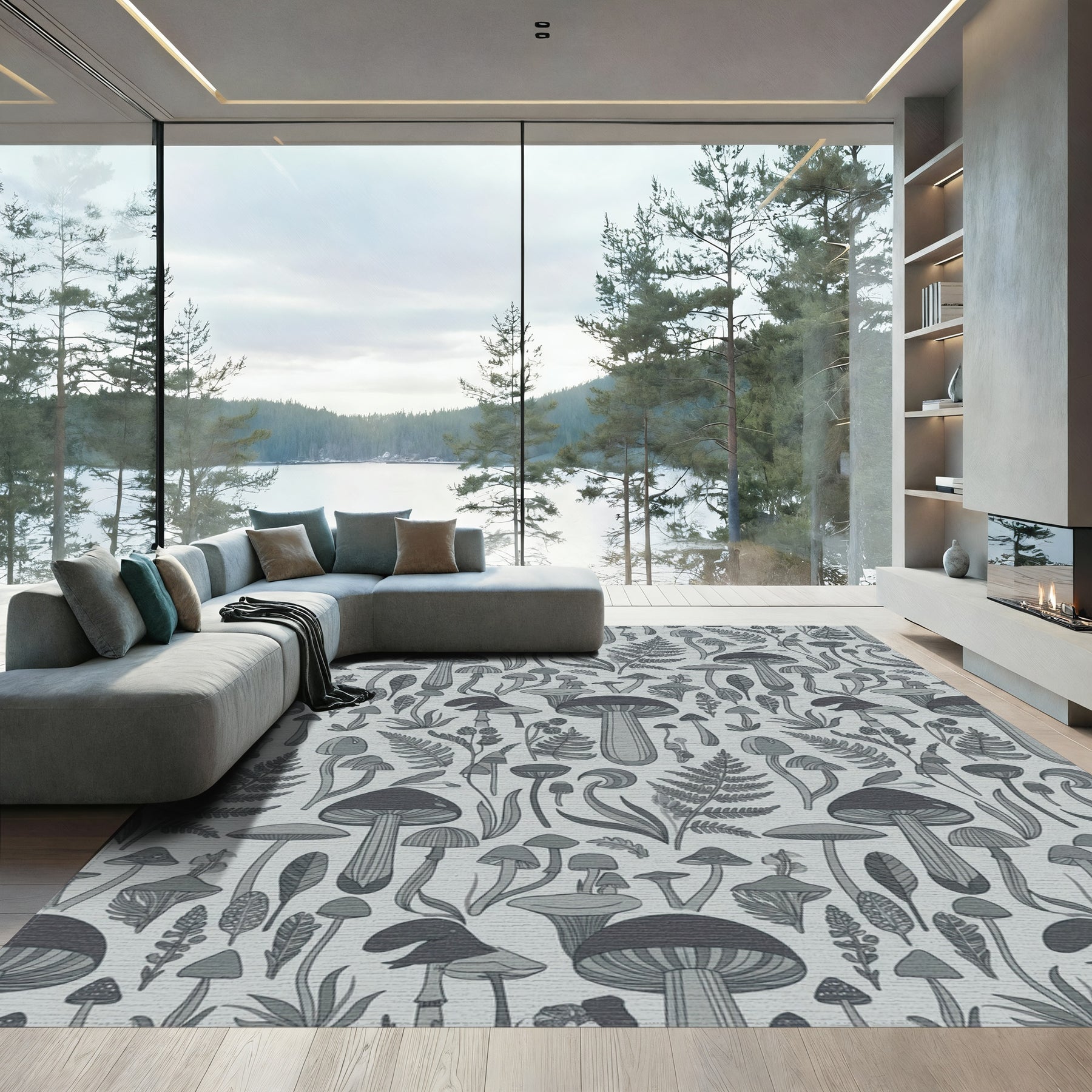 Flatwoven High Traffic Area Rug, Fantasy Mushroom Forest Foliage Gray Rug, Non Slip, Stain Resistant, Washable Area Rugs for Living Room, Bedroom Overview: