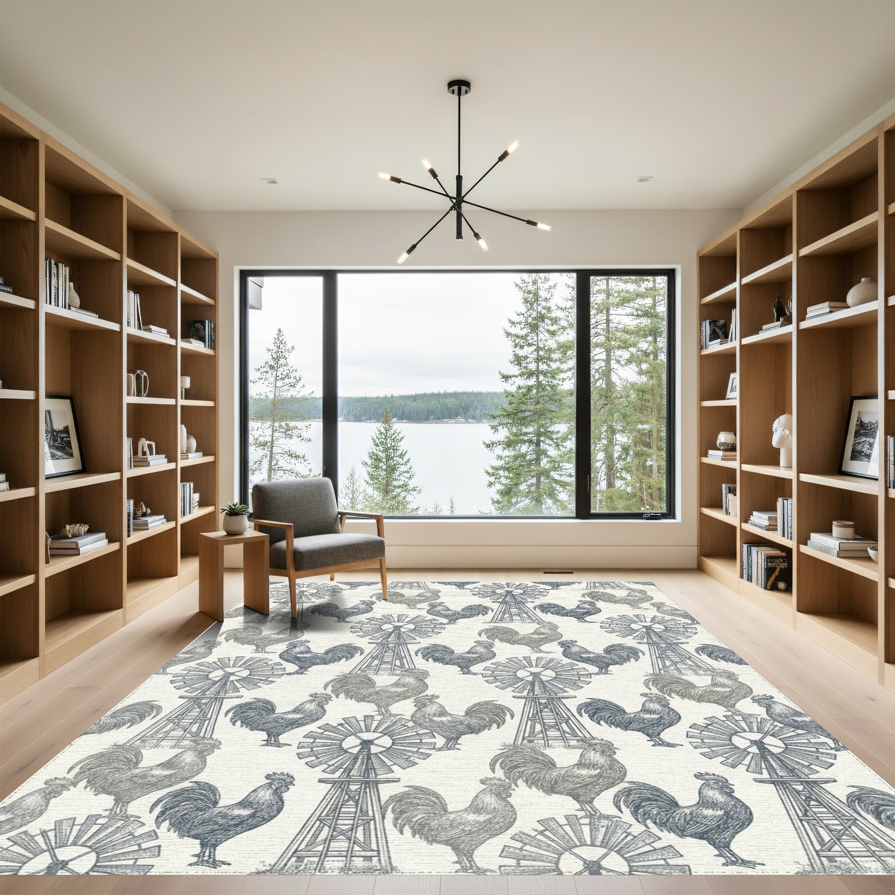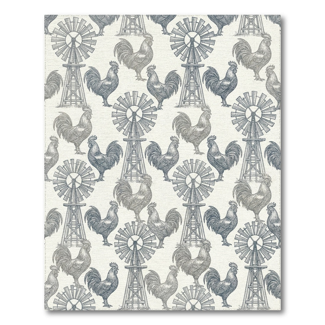 Farmhouse Roosters Windmill Sketch Rug