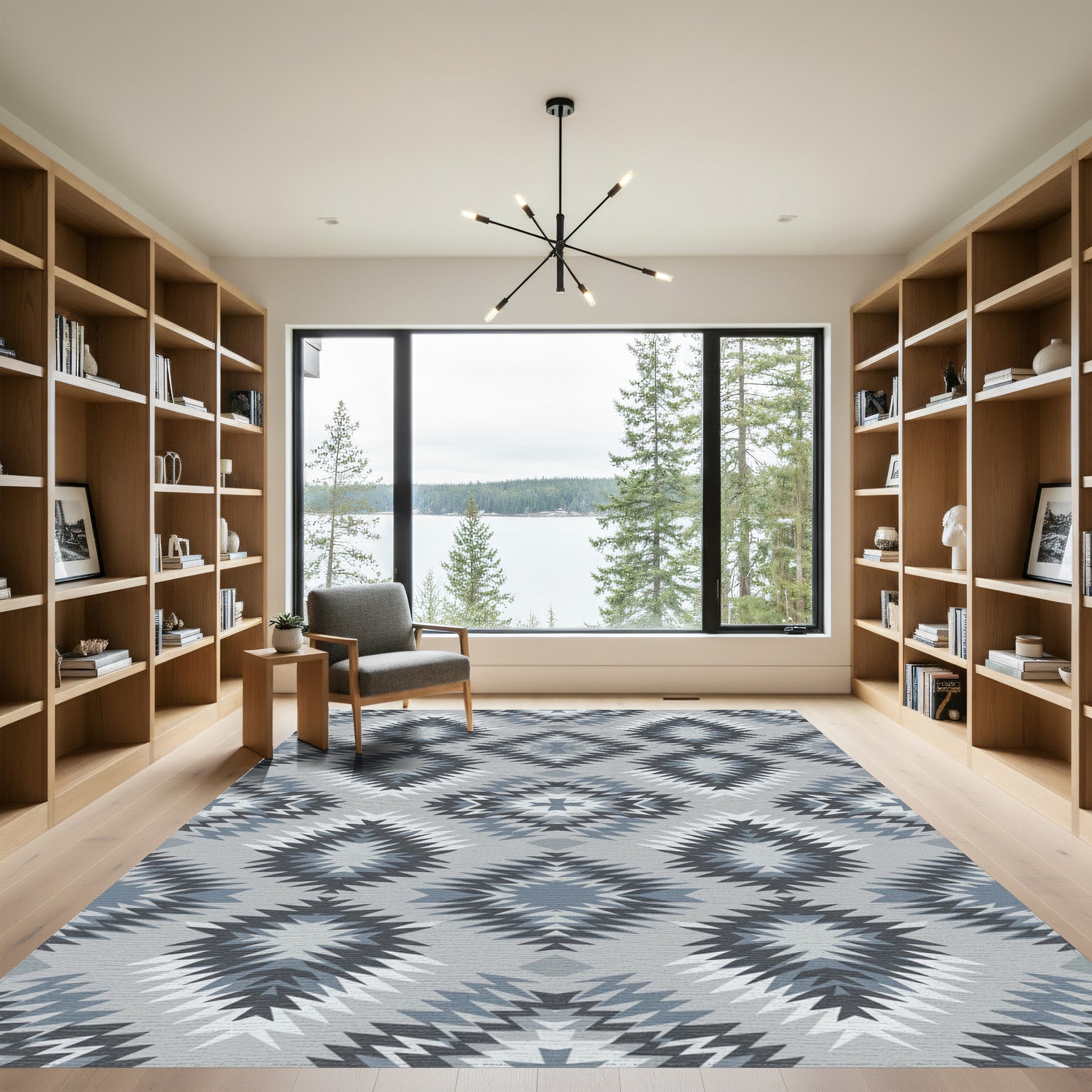 Flatwoven High Traffic Area Rug, Gray Diamond Aztec Geometric Rug, Non Slip, Stain Resistant, Washable Area Rugs for Living Room, Bedroom Overview: