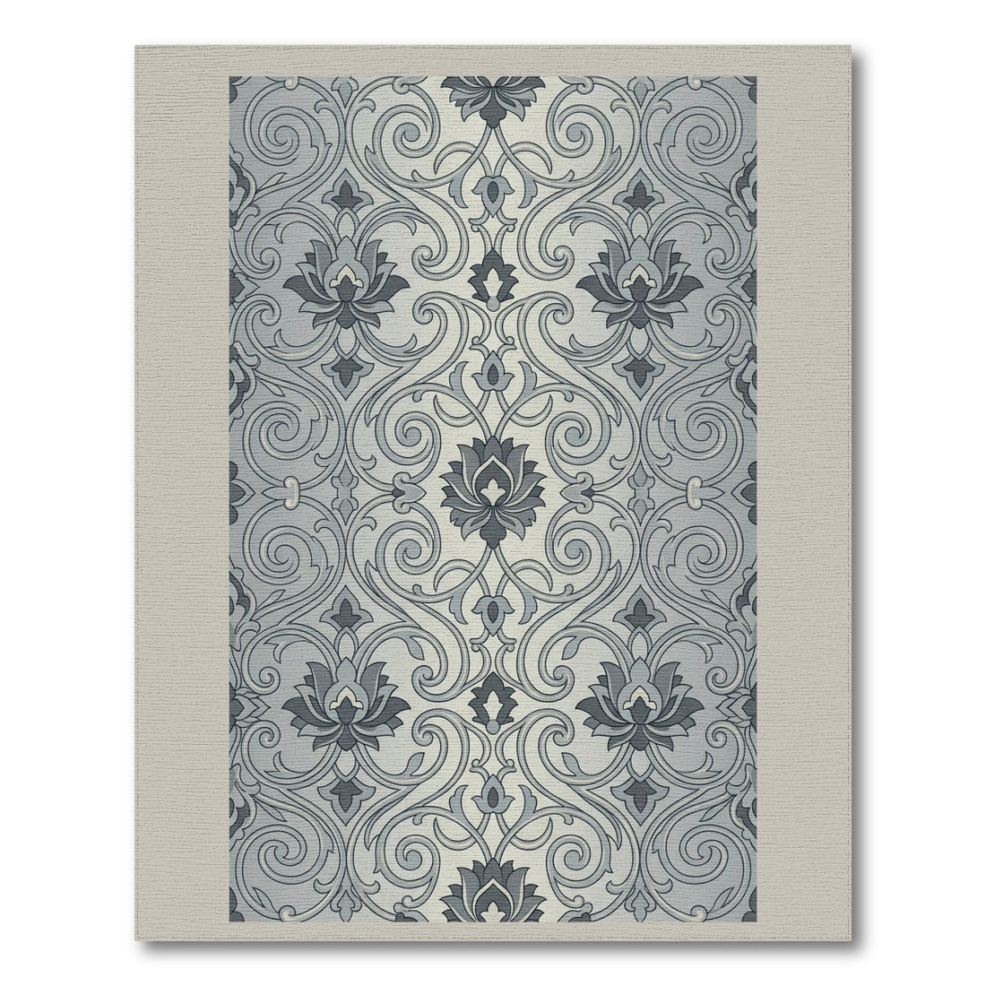 Flatwoven High Traffic Area Rug, Gray Floral Swirl Damask Rug, Non Slip, Stain Resistant, Washable Area Rugs for Living Room, Bedroom Overview:
