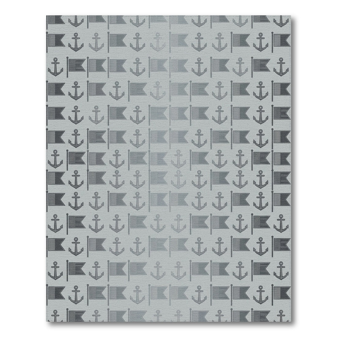 Flatwoven High Traffic Area Rug, Gray Nautical Anchor Flag Repeat Rug, Non Slip, Stain Resistant, Washable Area Rugs for Living Room, Bedroom Overview: