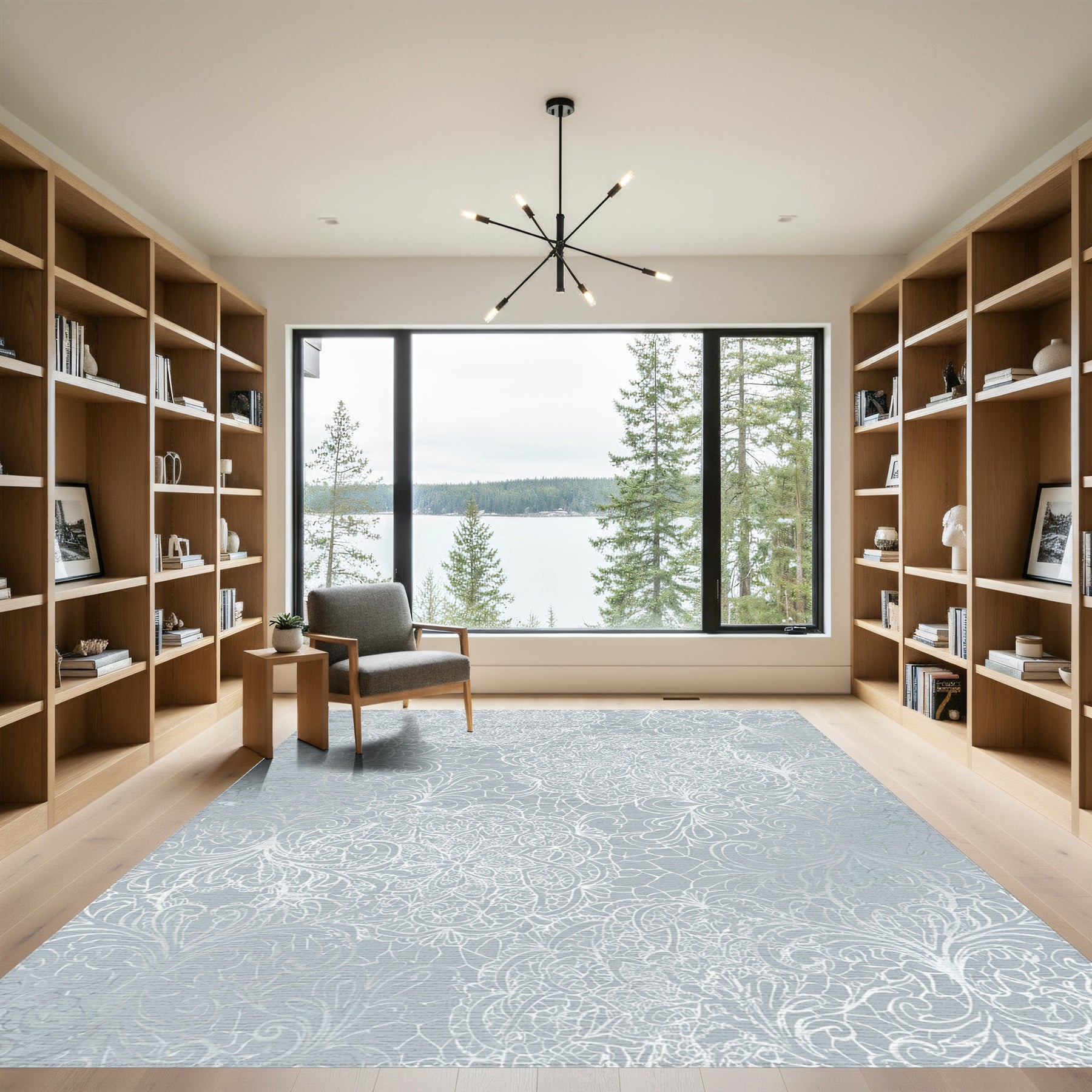 Flatwoven High Traffic Area Rug, Pale Gray Ornate Lace Mandala Rug, Non Slip, Stain Resistant, Washable Area Rugs for Living Room, Bedroom Overview:
