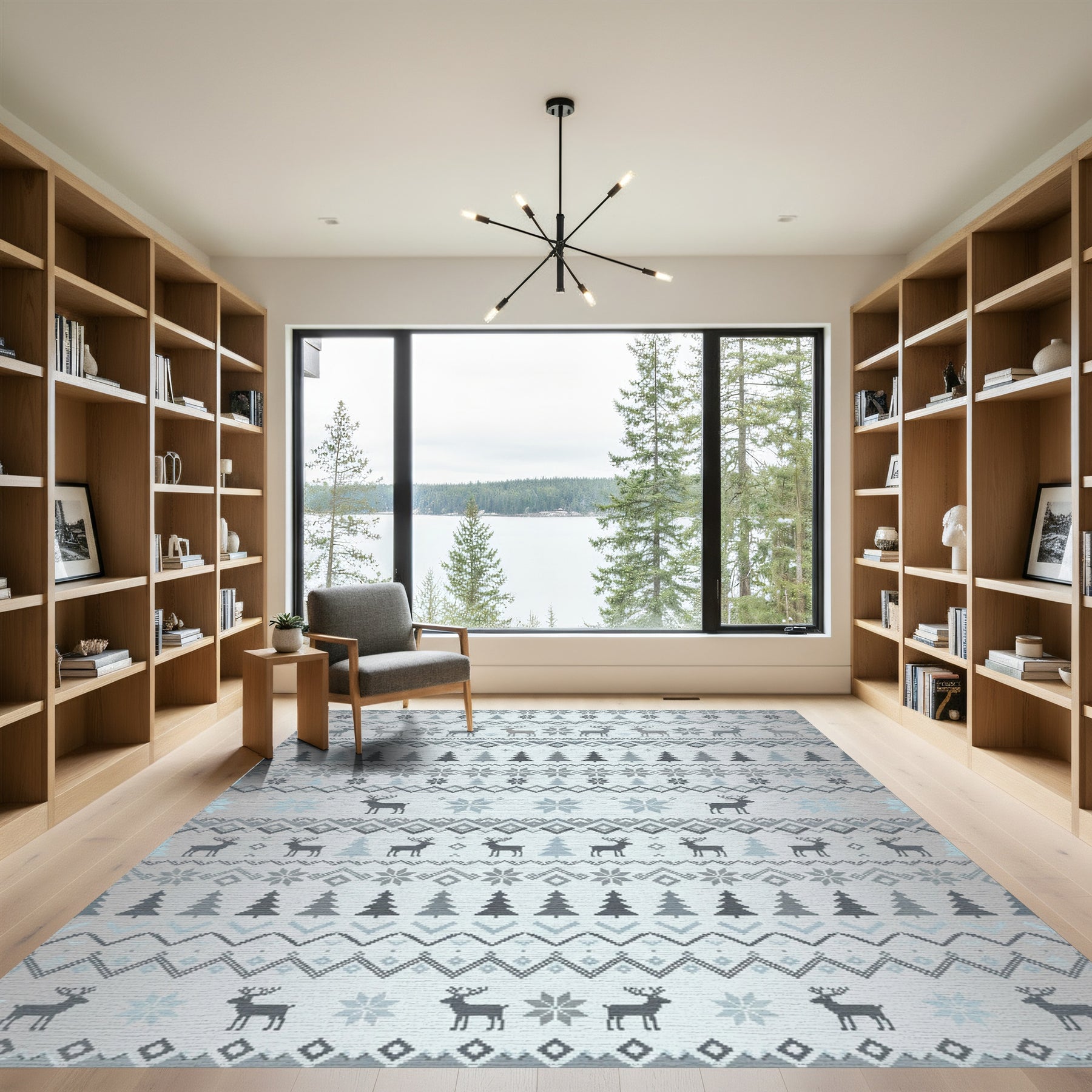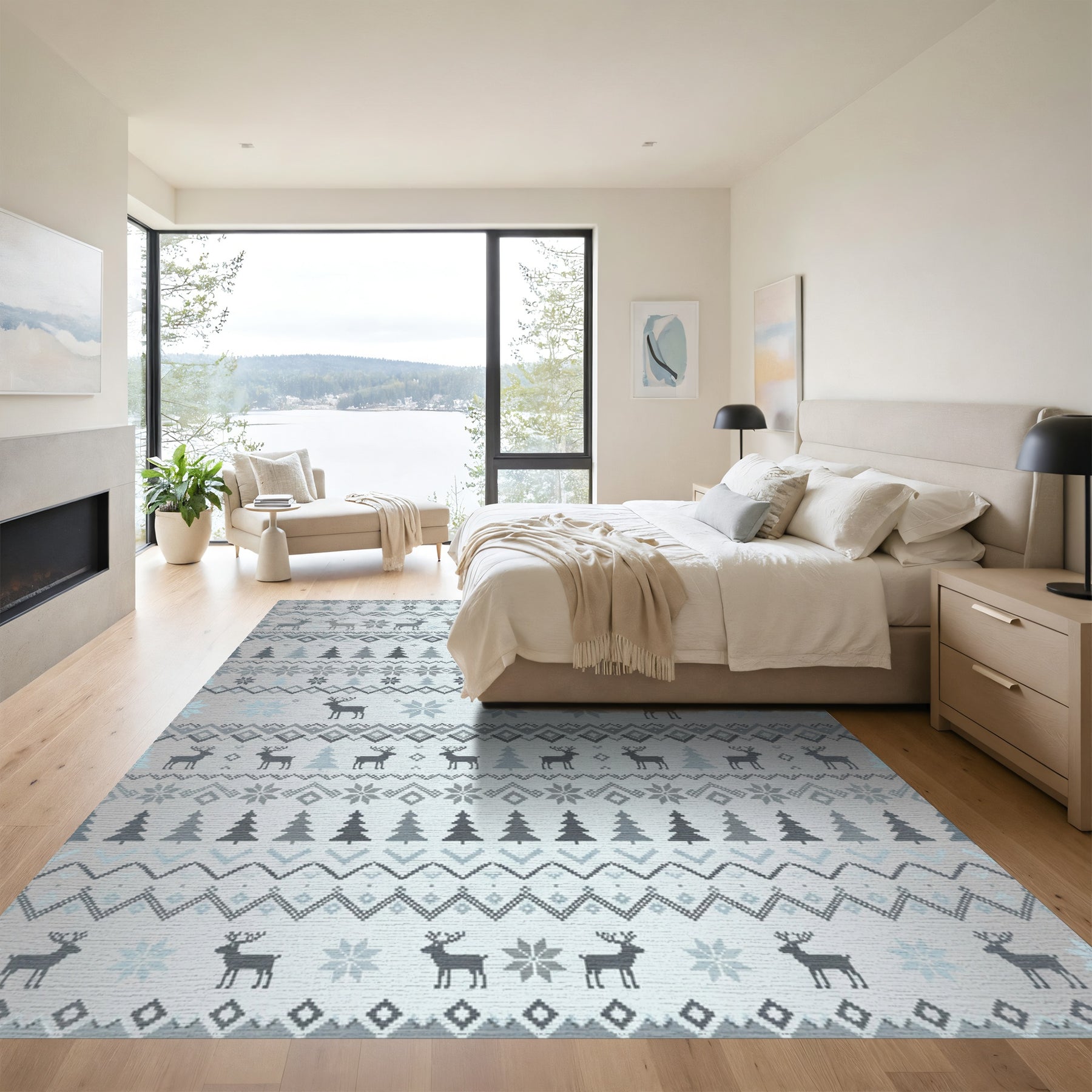 Flatwoven High Traffic Area Rug, Silver Gray Reindeer Tree Nordic Rug, Non Slip, Stain Resistant, Washable Area Rugs for Living Room, Bedroom Overview: