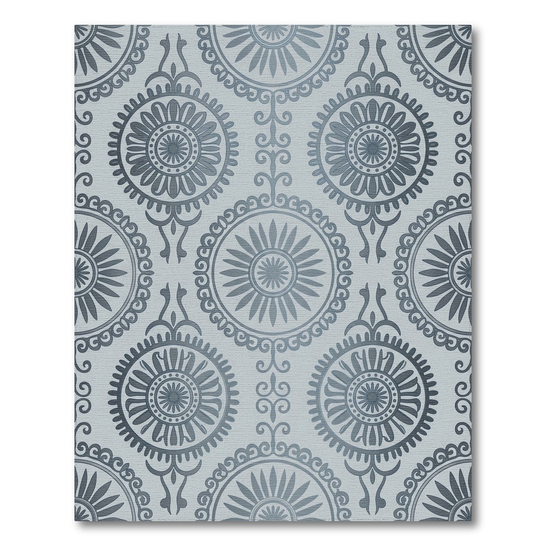 Flatwoven High Traffic Area Rug, Silver Medallion Sunburst Mandala Rug, Non Slip, Stain Resistant, Washable Area Rugs for Living Room, Bedroom Overview: