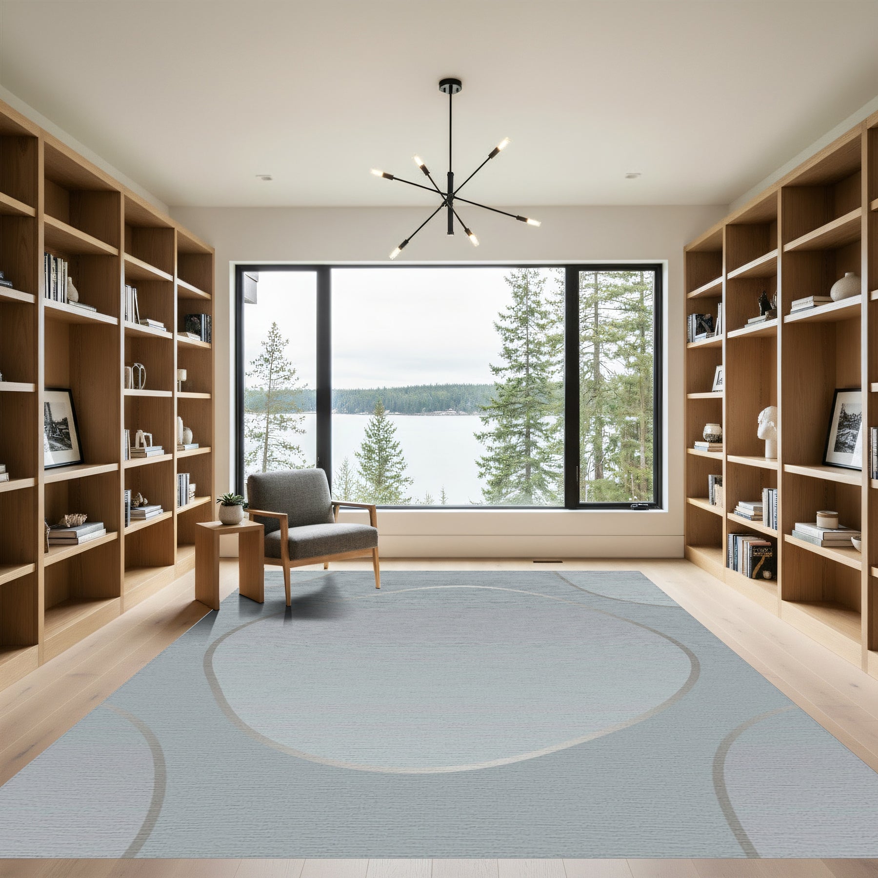 Flatwoven High Traffic Area Rug, Soft Gray Curving Outline Sculpture Rug, Non Slip, Stain Resistant, Washable Area Rugs for Living Room, Bedroom Overview: