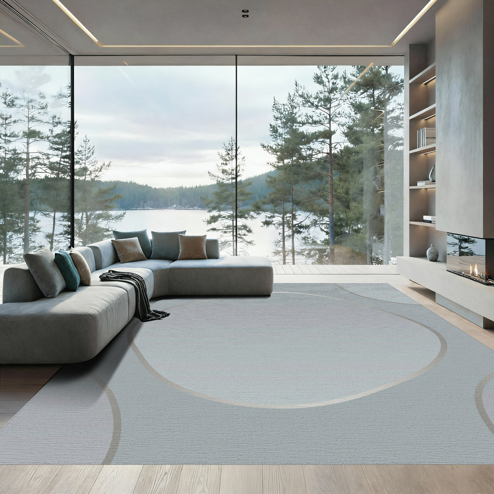 Soft Gray Curving Outline Sculpture Rug