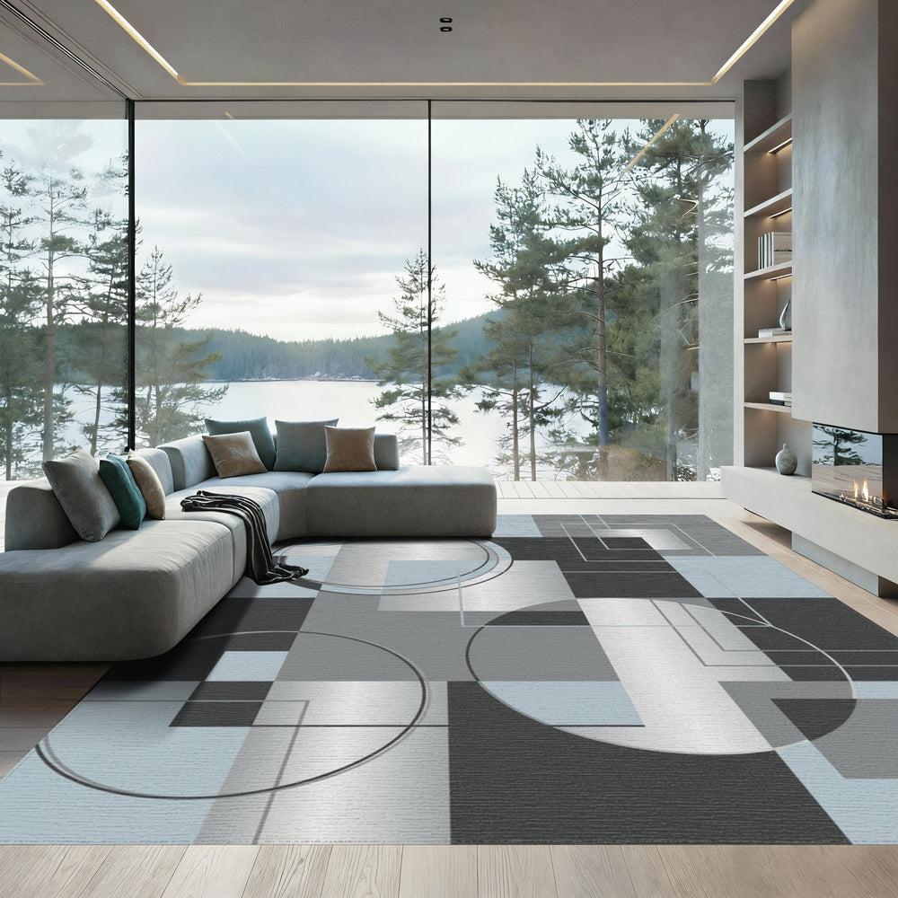 Slate Gray Geometric Intersecting Blocks Rug